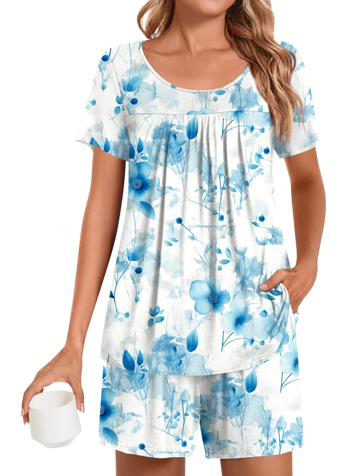 Note: Our pajama shorts sets for women run true to US sizing. Sizes available: M(US 8-10), L(US 12-14), XL(US 16-18), 2XL(US 20-22), 3XL(US 24-26), 4XL(US 28-30). Due to manual measurement, a 0.8-1.2 inch discrepancy is acceptable. The women's pjs are carefully prepacked by the manufacturer. If they arrive with any creases, we suggest using light steam iron to gently remove them