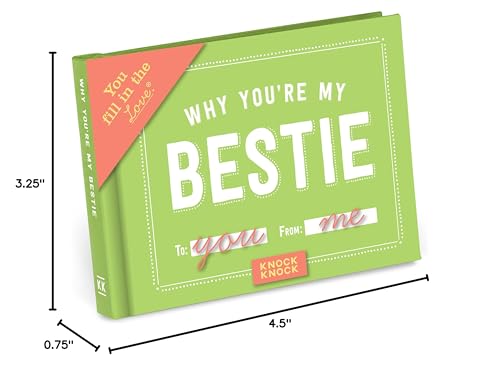 This little book contains fill-in-the-blank lines to describe why your best pal is the bomb. Just complete each line and voilà : you have a uniquely personal gift a BFF will read again and again. Make it as sly, silly, or sweet as you choose! Cute best-friend gifts don't get any better, for BFFs old and young alike Hardcover with removable clear plastic jacket; 4.5 - 3.25 inches; 112 pages