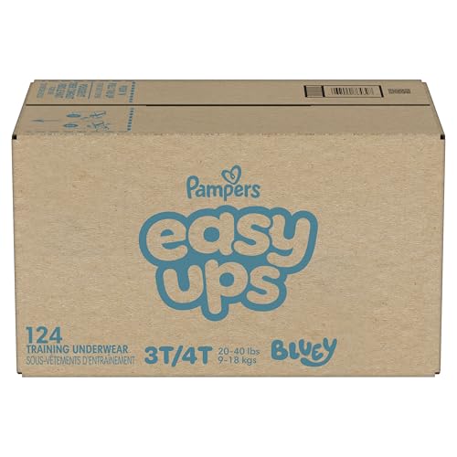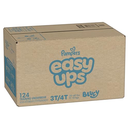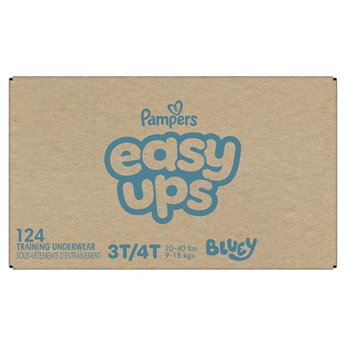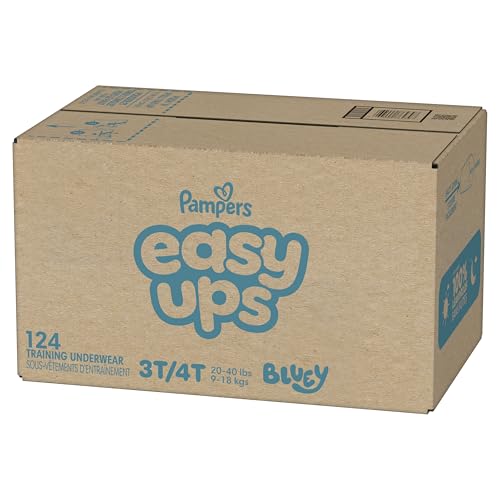 Ready to potty train with Peppa? Pampers Easy Ups Training Pants featuring Peppa makes it easy. They pair the feeling of real underwear with the protection of Pampers to make training easier for everyone. Give your child the confidence to take on potty training with a little more independence and a lot more fun. Easy Ups Training Pants feature stretchy sides and an underwear-like waistband for easy up and down, plus an ultra-absorbent core with LockAway Channel to help keep them dry day and night. With up to 2X better protection day and night*, Easy Ups deliver up to 100% leakproof protection. These hypoallergenic, dermatologist-approved training pants are made with 0% elemental chlorine, parabens, or latex** and backed by the Pampers Safety Promise. Fun Peppa designs motivate your toddler to potty train. Pampers Easy Ups are also available with Bluey! Pair with Pampers Sensitive Wipes to help keep your toddler's skin healthy. Find your toddler's best fit in the following sizes: training pants 2T–3T (diaper size 4,15–34 lbs.), training pants 3T–4T (diaper size 5, 20–40 lbs.), training pants 4T–5T (diaper size 6, 23-50 lbs.), training pants 5T–6T (diaper size 7, 35–60 lbs.), training pants 6T–7T (diaper size 8, 46+ lbs.) *Urine leaks vs. leading competitor size 2T-3T ** No natural rubber Pricing based on MSRP; excludes Easy Ups Jumbo. Pricing at the sole discretion of the retailer