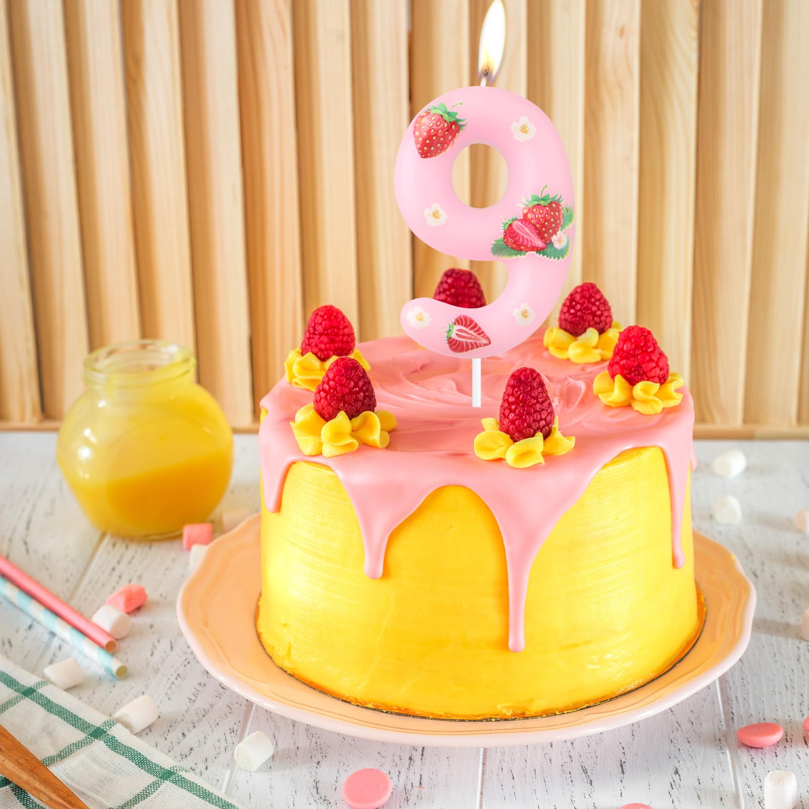 SAFE MATERIAL:Our berry sweet strawberry birthday candles are made of environmentally friendly materials,safe and odorless, suitable for birthday cakes of any size or for any celebration like birthday party,anniversary,theme party and etc,ideal personalized candles for birthday cakes,happy birthday candle,birthday candles number 4 🍓