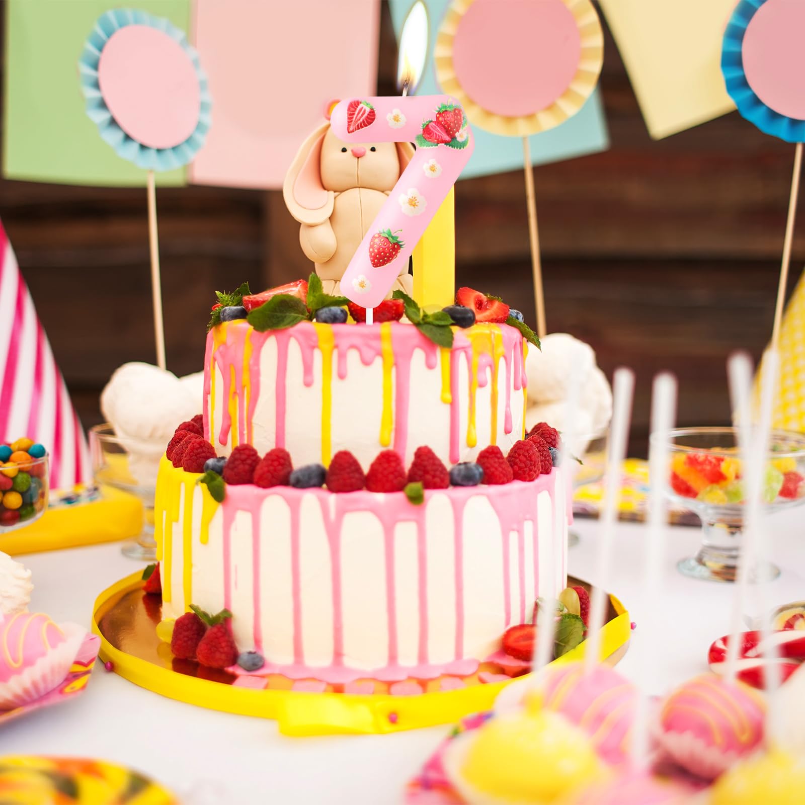 iNINGER Happy Birthday Number Candle,Strawberry Party Number 4 Candle,Pink 4th Birthday Candle,Happy Birthday Cake Candle,Berry Sweet Strawberry Birthday Girls Kids Birthday Baby Shower Decorations Strawberry Number Candles Vivid Delicate Appearance: Create color and fun for your party with our groovy party themed birthday candles!These themed digital candles are perfect for groovy themed desserts,frozen desserts,ice cream cakes,birthday cakes,Valentine's Day,and more!And create a lot of happiness,bringing joy to your party,which are both loved by adults and children. Strawberry Number Candles Adapt To The Venue: Ideal groovy party cake decoration for many occasions,such as frozen birthdays,pet birthdays,baby showers, anniversaries,retirement parties,family reunions,weddings,Hawaiian parties,even Christmas,must-have items for party cake,bring you memorable and meaningful party. Specifications: Quantity: 1 piece Material: wax Candle length: approx. 6cm/2.36inch Total length: approx. 11cm/ 4.3inch Color: As Shown Package includes: 1 x Strawberry Party Number 4 Birthday Candle Warm notices: Please allow little error on the size due to manual. Do not leave the lighted candles unattended. Please place candles out of reach of children. And please do not light candles on or near flammable materials.