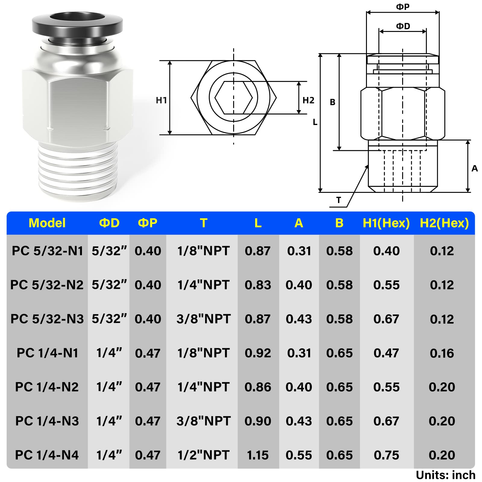 【Size】1/4" Tube OD x 1/8" NPT Thread,Notice - NPT Thread Size is a Nominal Pipe Size, and it Does Not represent the actual diameter