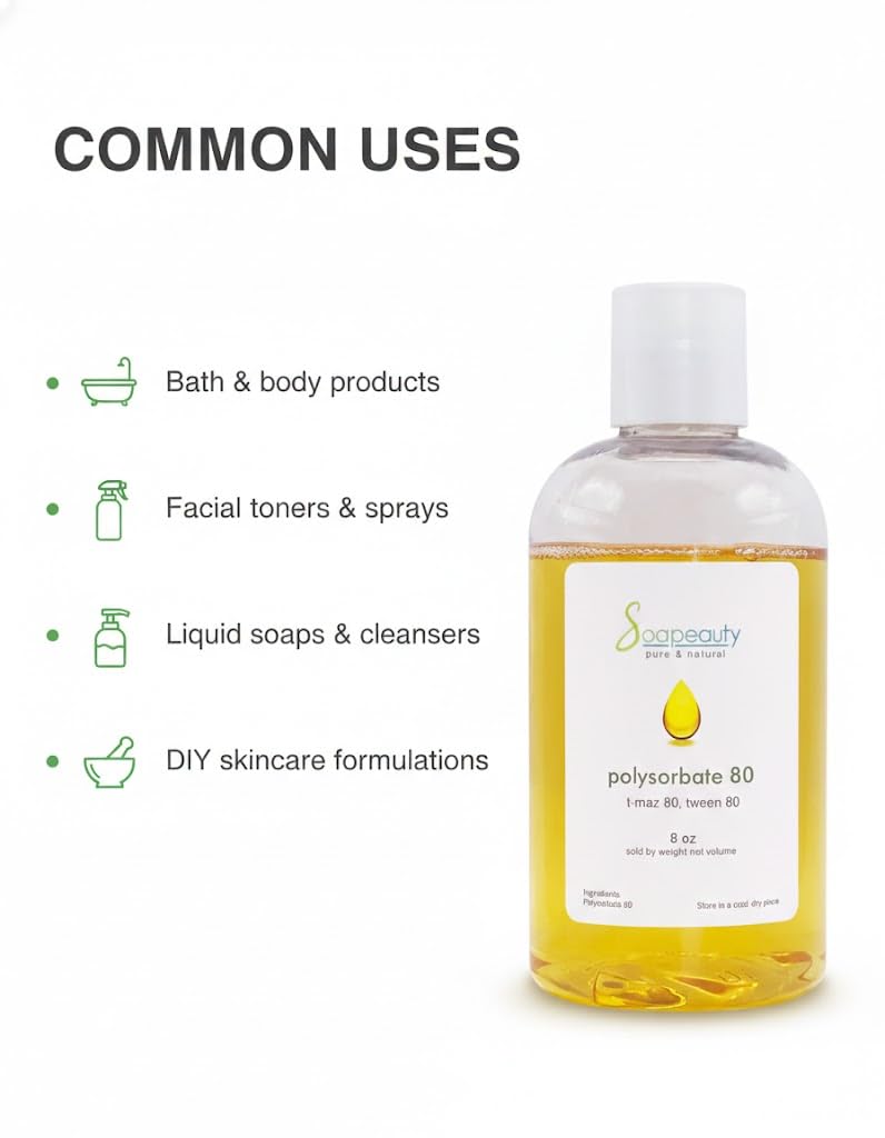 PROFESSIONAL GRADE: Soapeauty supplies bulk Polysorbate 80, T-Maz 80 & Tween 80 to some of the nation’s largest brands and we stand behind every product we sell.