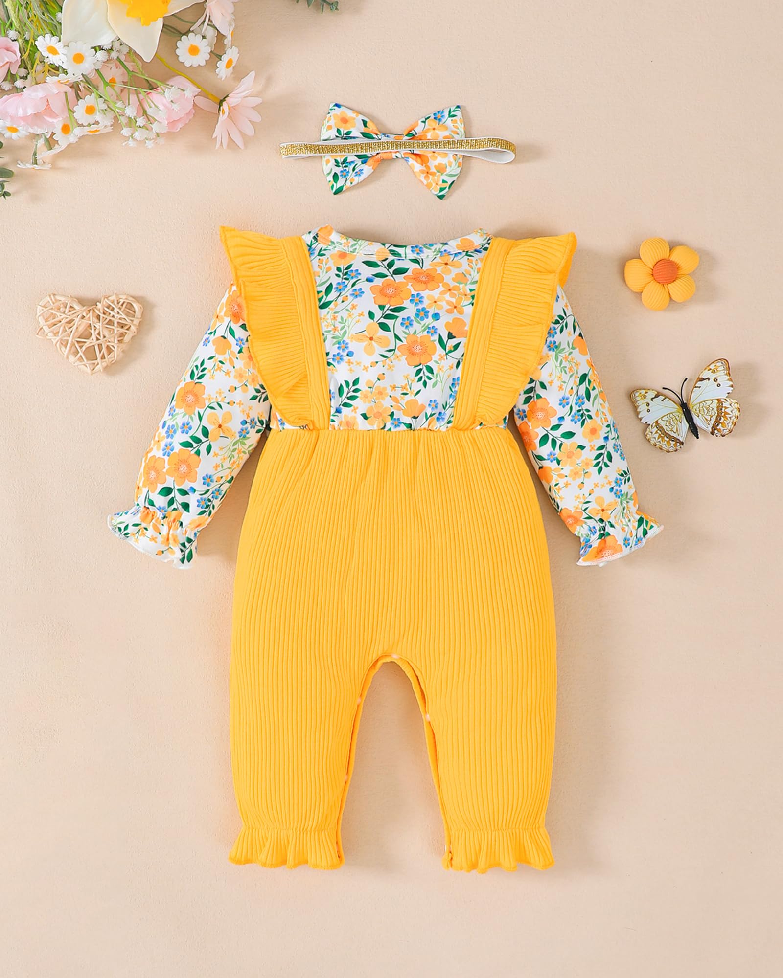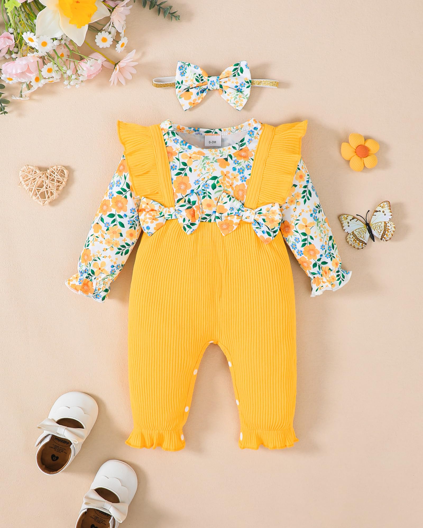 Baby Girl Clothes Set: 1*long sleeve jumpsuit + headband, total 2 pieces outfits for girls