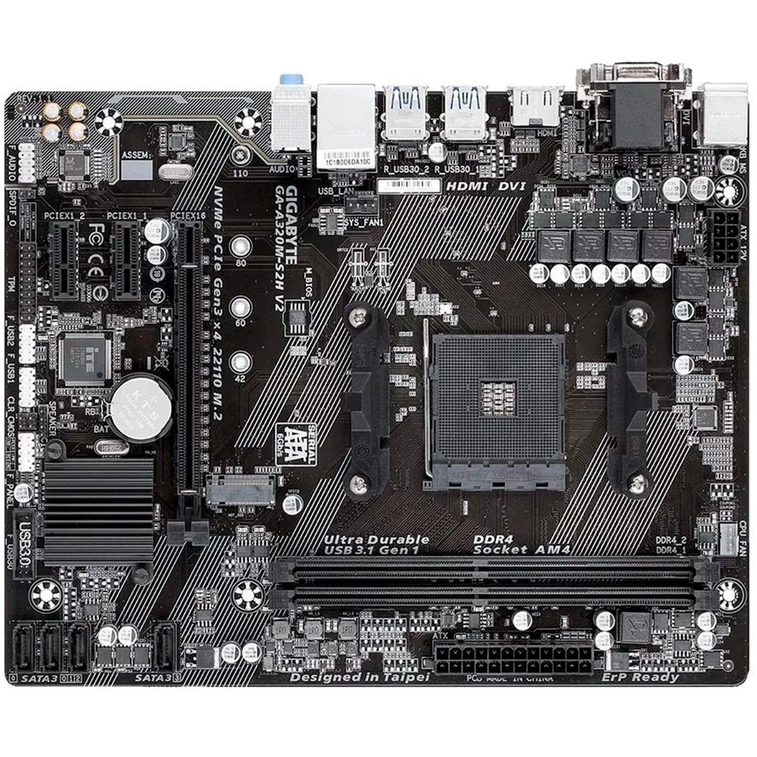 Supports AMD Ryzen and 7th Generation A Series/Athlon Processors Dual Channel Non ECC Unbuffered DDR4, 2 DIMMs Ultra-Fast PCIe Gen3 x4 M.2 with PCIe NVMe and SATA mode support High Quality Audio Capacitors and Audio Noise Guard Realtek Gigabit LAN with cFosSpeed Internet Accelerator Software Smart Fan 5 features 5 Temperature Sensors and 2 Hybrid Fan Headers Gigabyte UEFI BIOS All New Gigabyte APP Center, Simple and Easy Use. Micro ATX Form Factor; 24.4 cm x 19.5 cm.