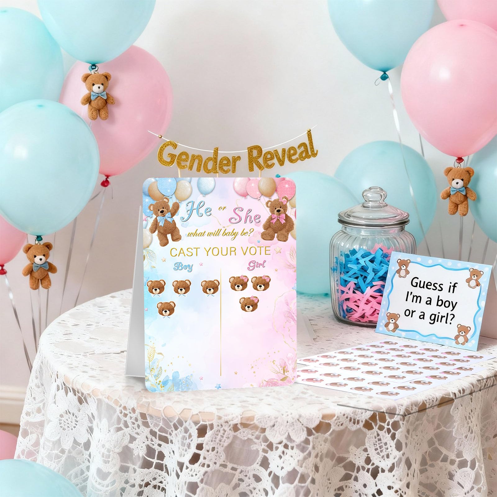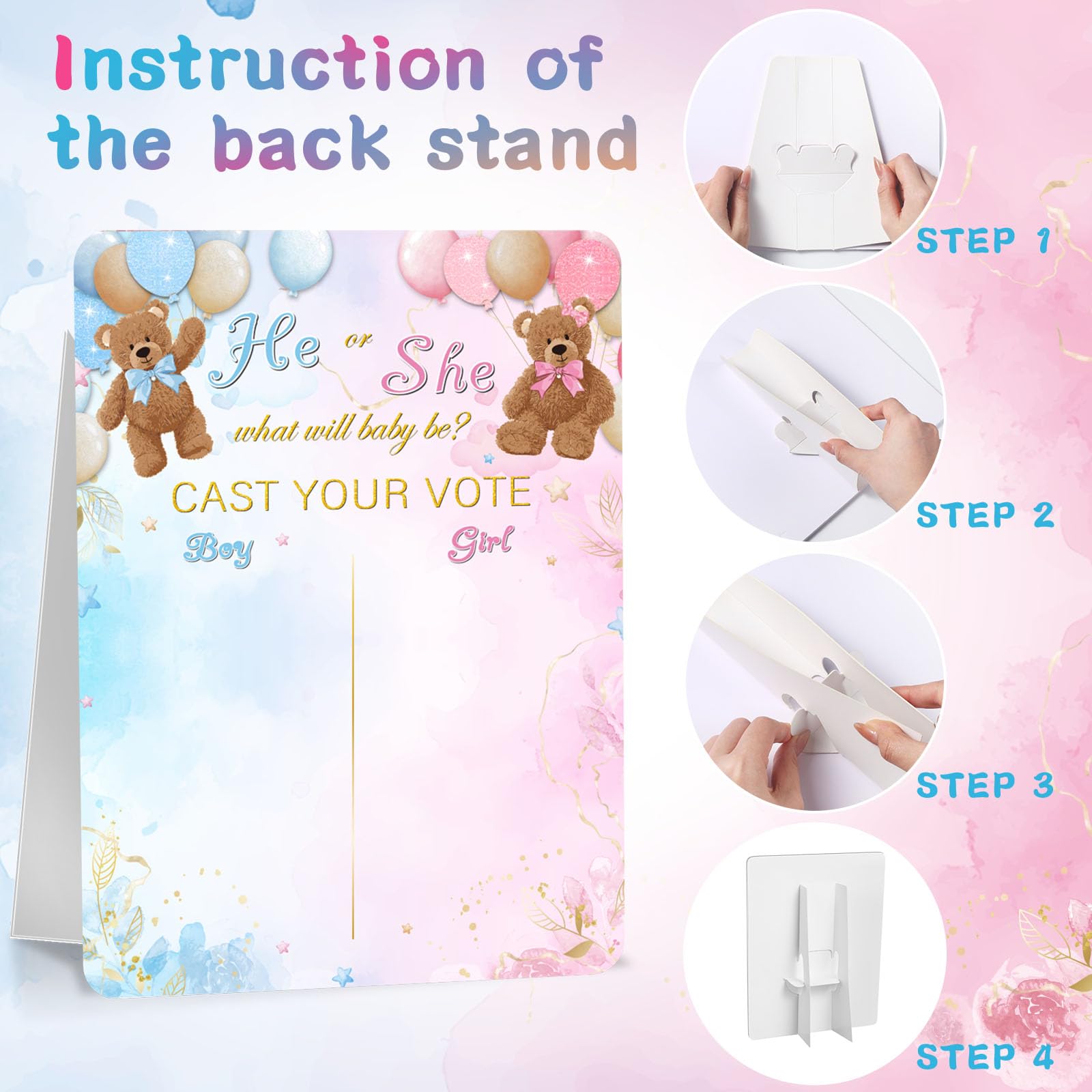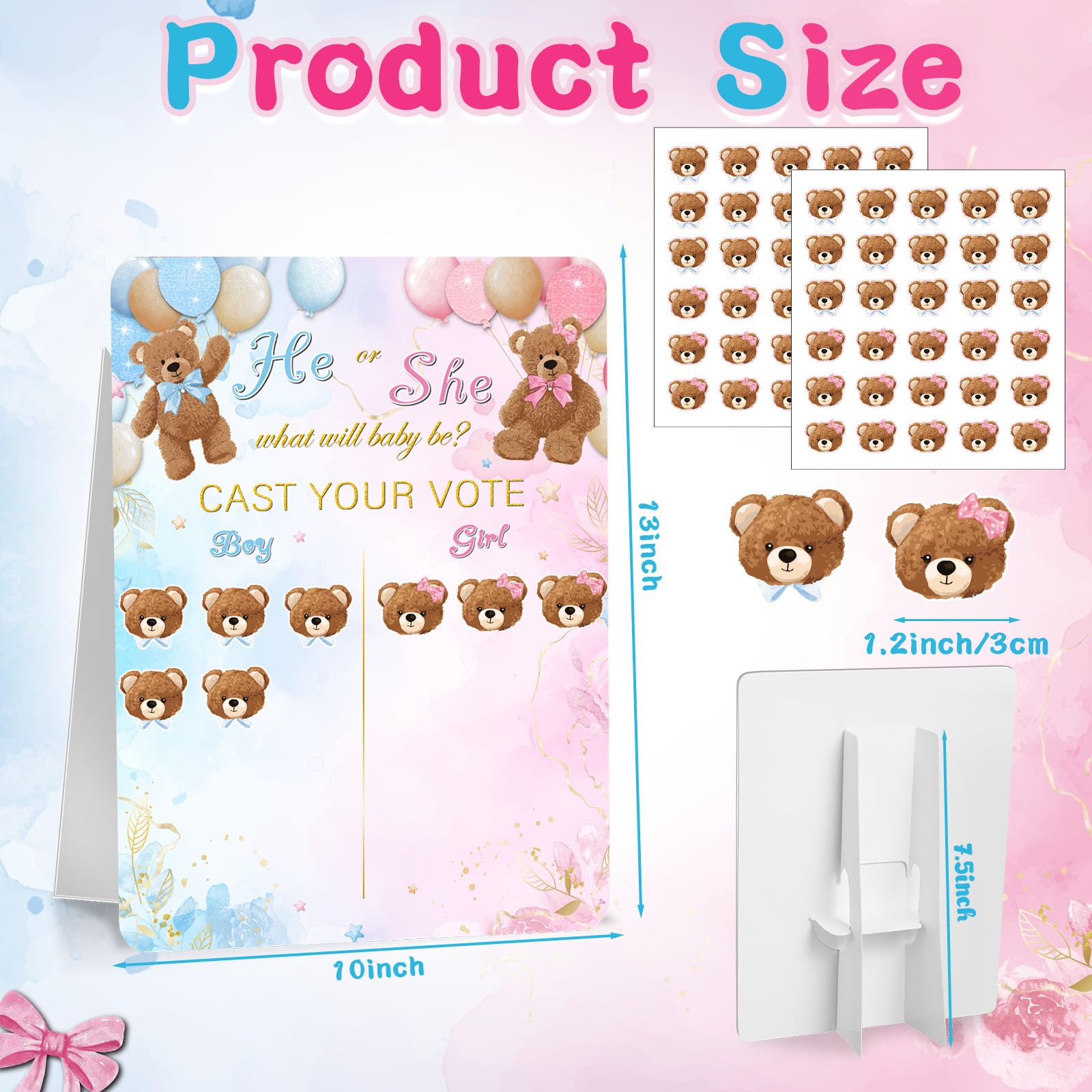 Bear Gender Reveal Game Kit: you will get a gender reveal voting board sign with stand, 30 pieces of girl bear voting stickers and 30 pieces of boy bear voting stickers for team boy or team girl guesses; The sufficient quantity allows all your guests to join the fun and make their prediction