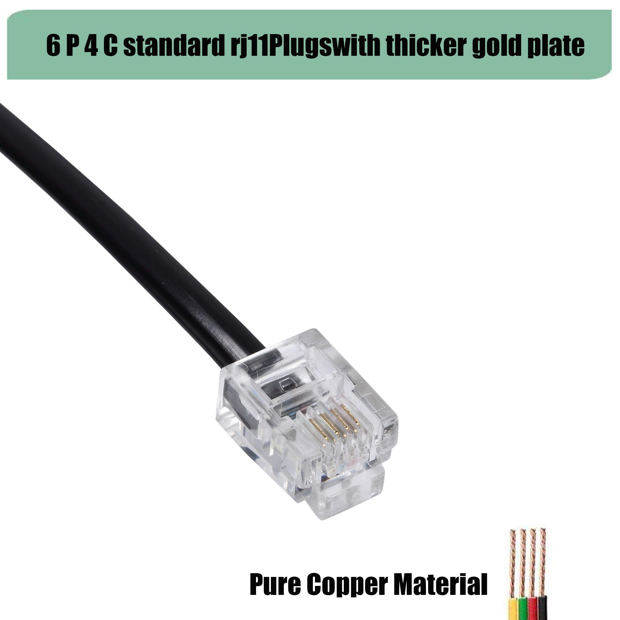 [CLEAR AND PLEASANT COMMUNICATION] Designed for superior signal transmission. The cores of wires are made of Pure-copper material, thickness is up to 26AWG, which is much better than ordinary Copper-clad-Steel telephone cord or most telephone cords with thin copper cores on market, And contacts of plugs are coated with thicker gold plate than normal ones on market. Both ensure great connection and conservation quality. Make your phone call and reply more pleasant.