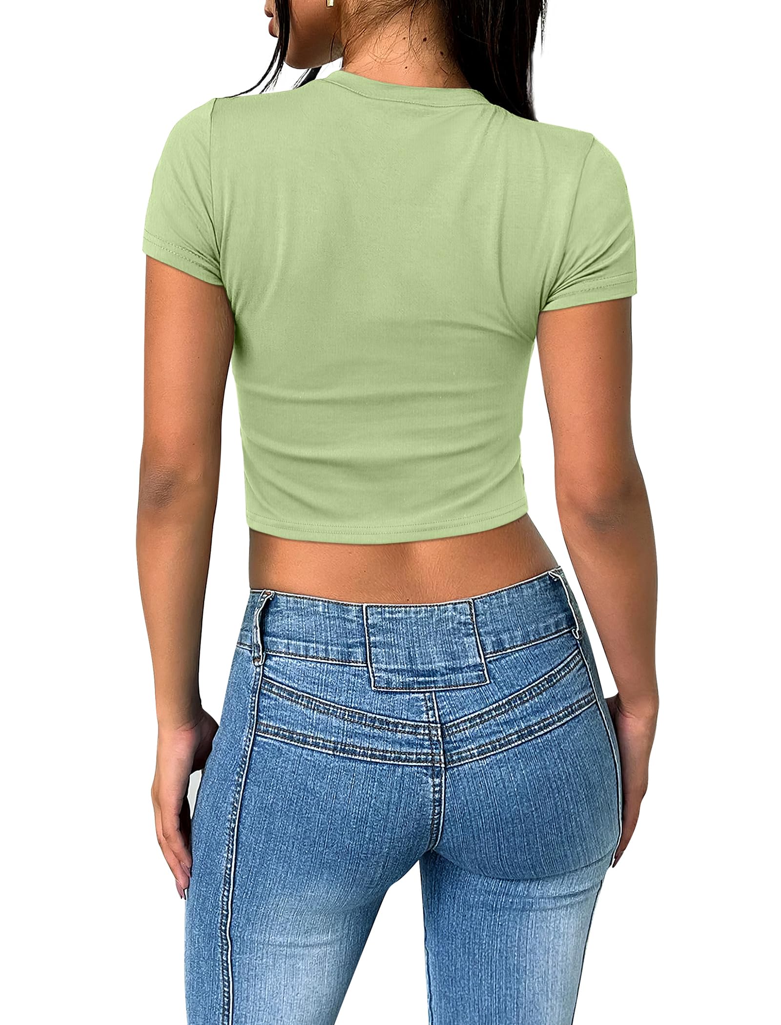 Y2K Design: This top features a cute, slim-fitted, and casual style with a crew neck and short sleeves. It comes in both cropped and regular styles, giving you the option to wear it as a regular top or fold it up for a trendy crop top look. Whether you're dressing up for a night out or going for a casual look, this top is perfect for any occasion.