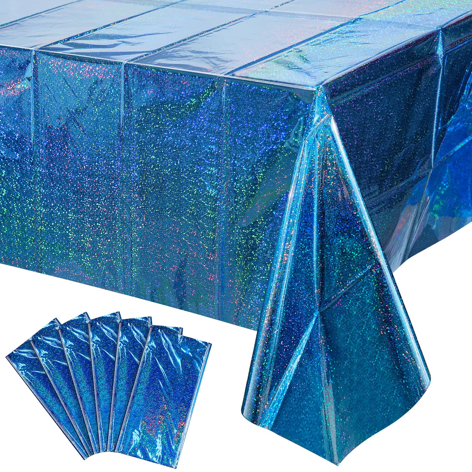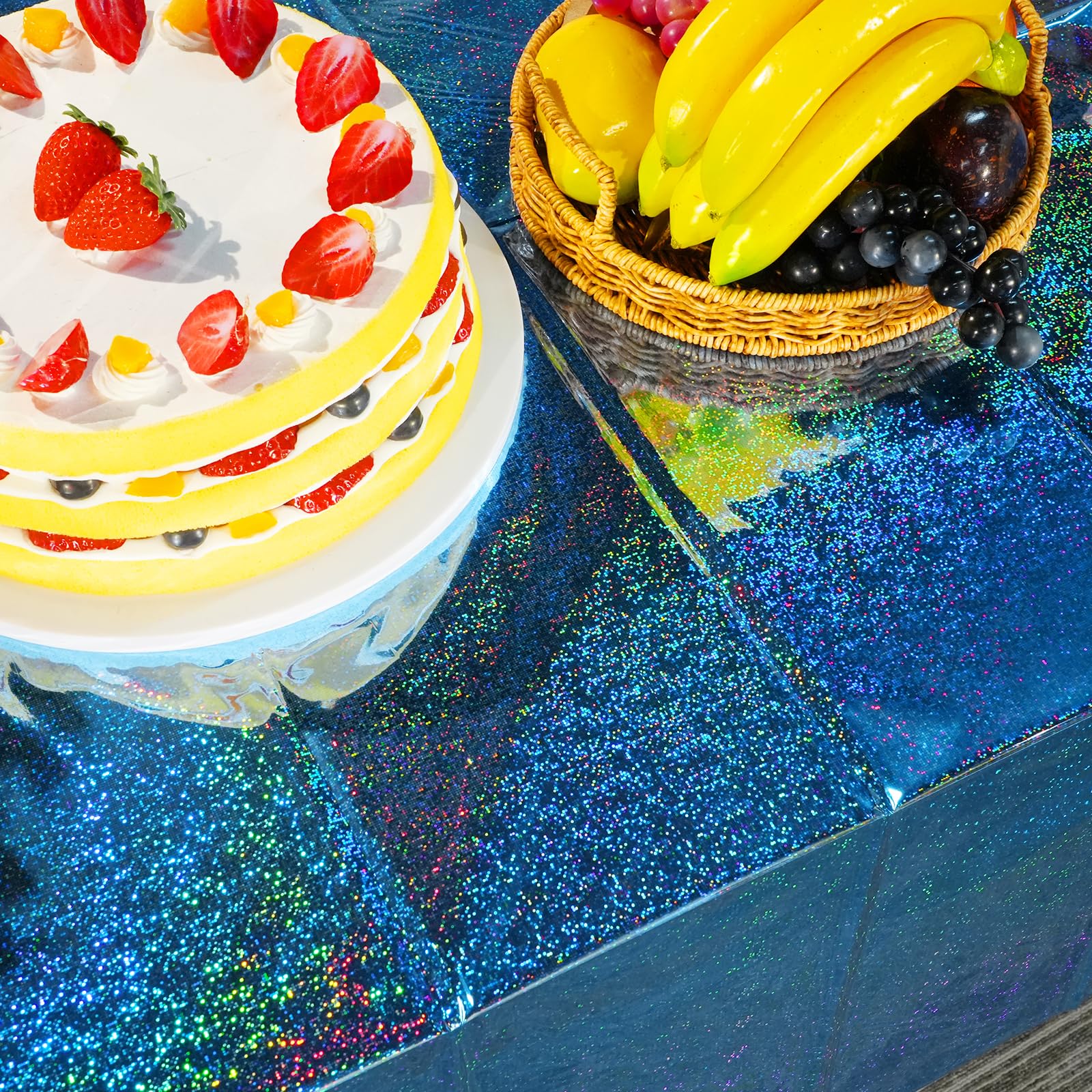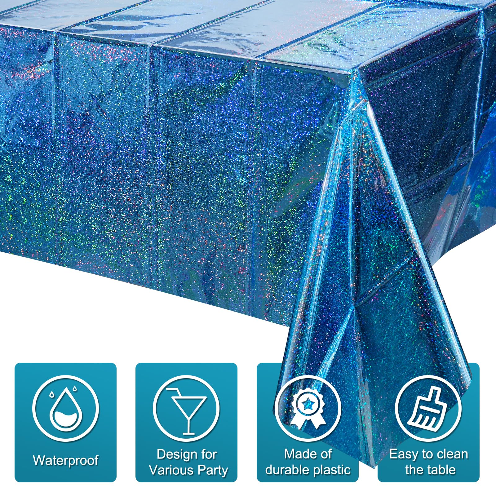 Blue Party Decorations The iridescent blue tablecloths for parties feature a shiny holographic design, and it shows different color effects under different light, all very beautiful and shiny, which will be a highlight of your party and make the party atmosphere more joyful. Wide Applications: Our blue tablecloth party decorations are the perfect choice for almost any occasion, such as a boy's birthday, graduation, baby shower, wedding party, barbie party, bachelorette party, 70 80 90’s time party, ocean theme, under the sea party and shining theme party, festival, and everyday use.