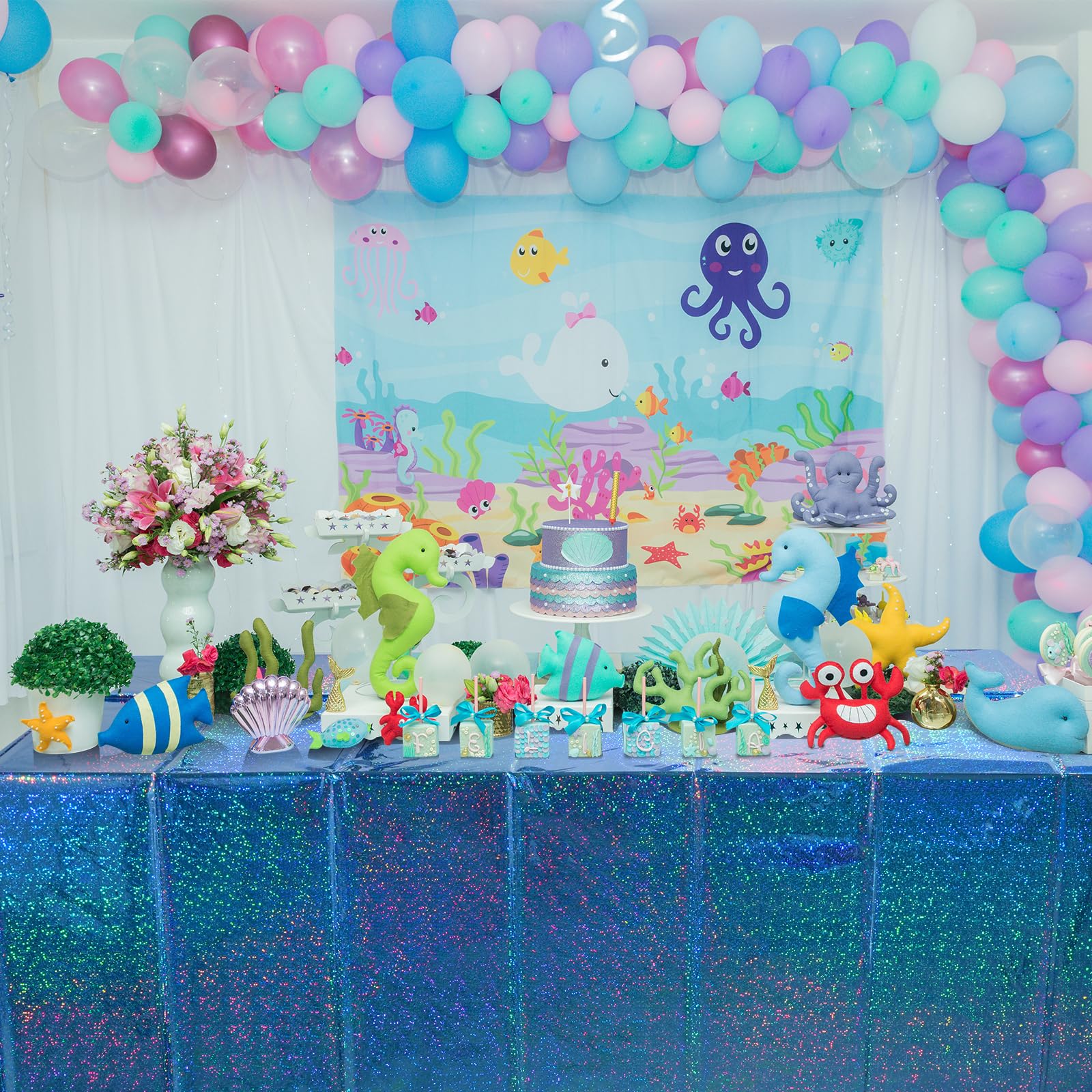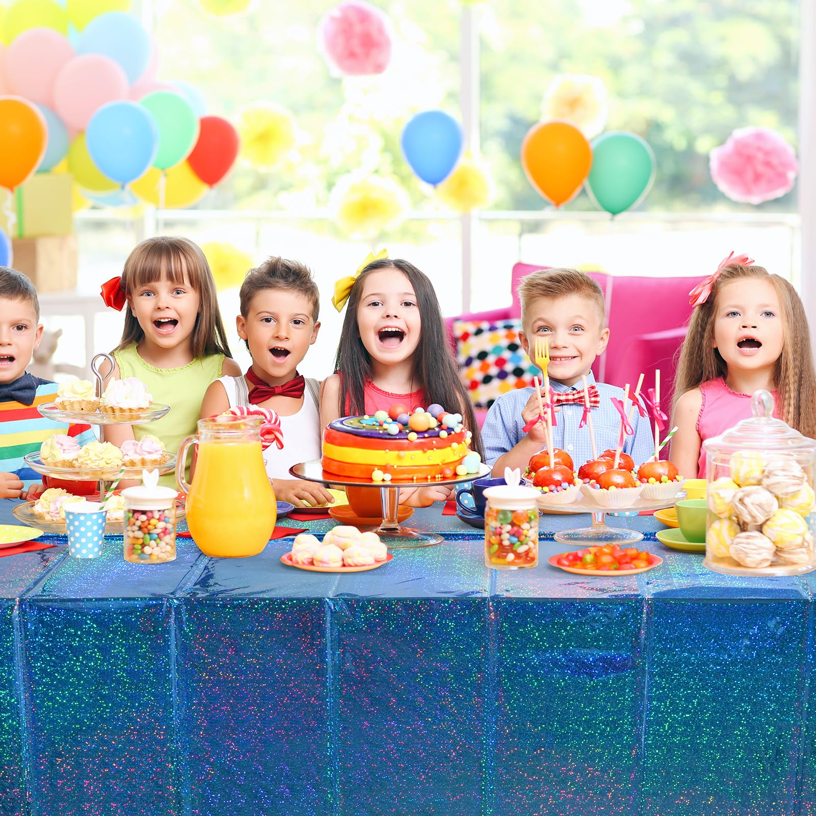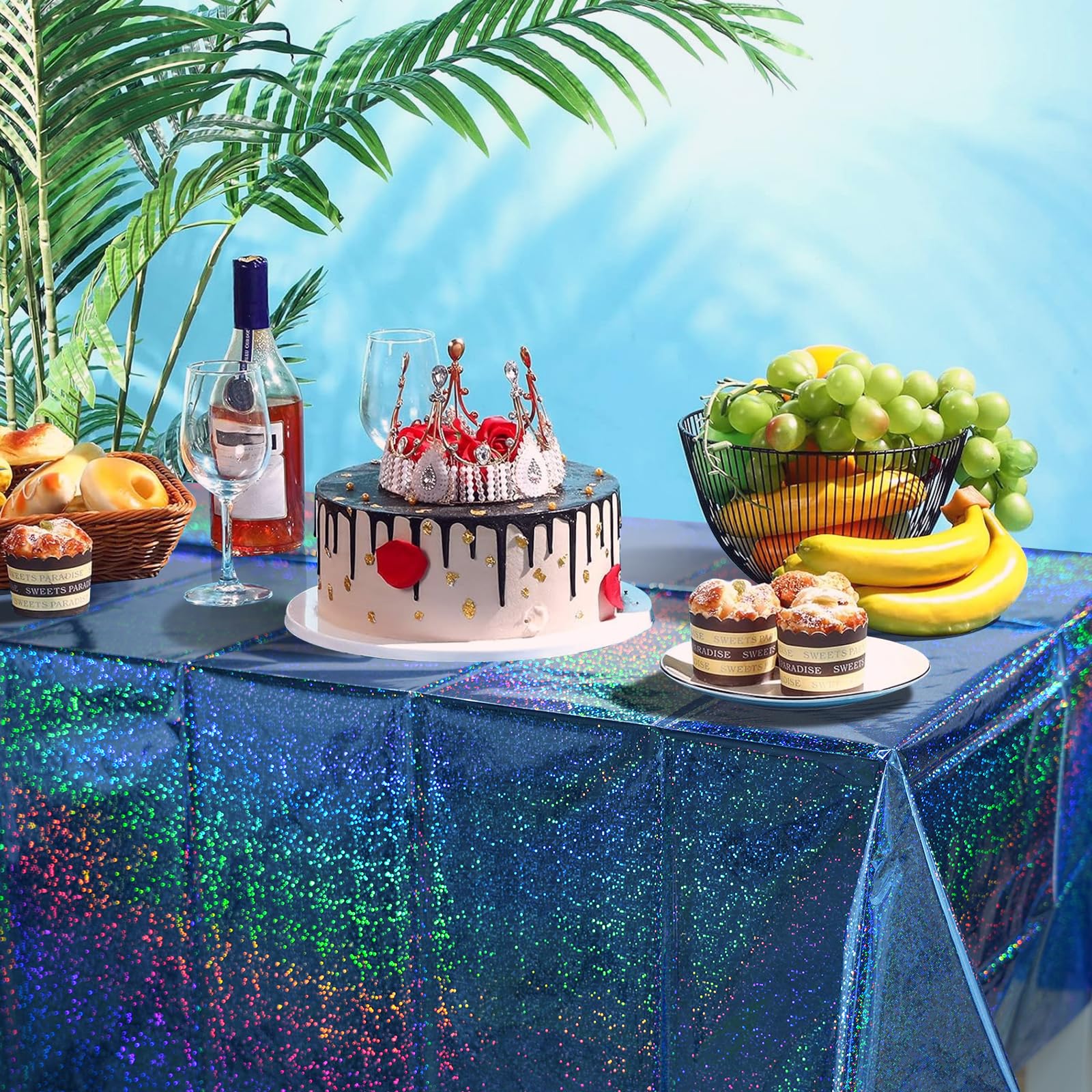 Blue Party Decorations The iridescent blue tablecloths for parties feature a shiny holographic design, and it shows different color effects under different light, all very beautiful and shiny, which will be a highlight of your party and make the party atmosphere more joyful. Wide Applications: Our blue tablecloth party decorations are the perfect choice for almost any occasion, such as a boy's birthday, graduation, baby shower, wedding party, barbie party, bachelorette party, 70 80 90’s time party, ocean theme, under the sea party and shining theme party, festival, and everyday use.