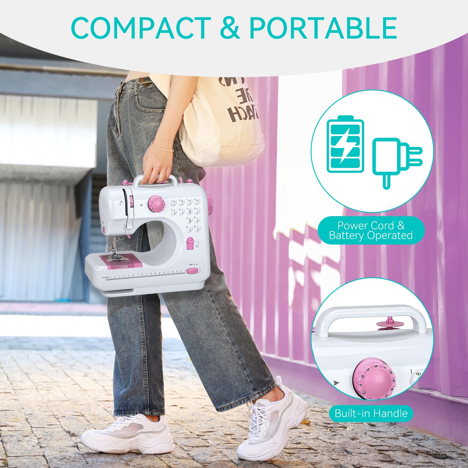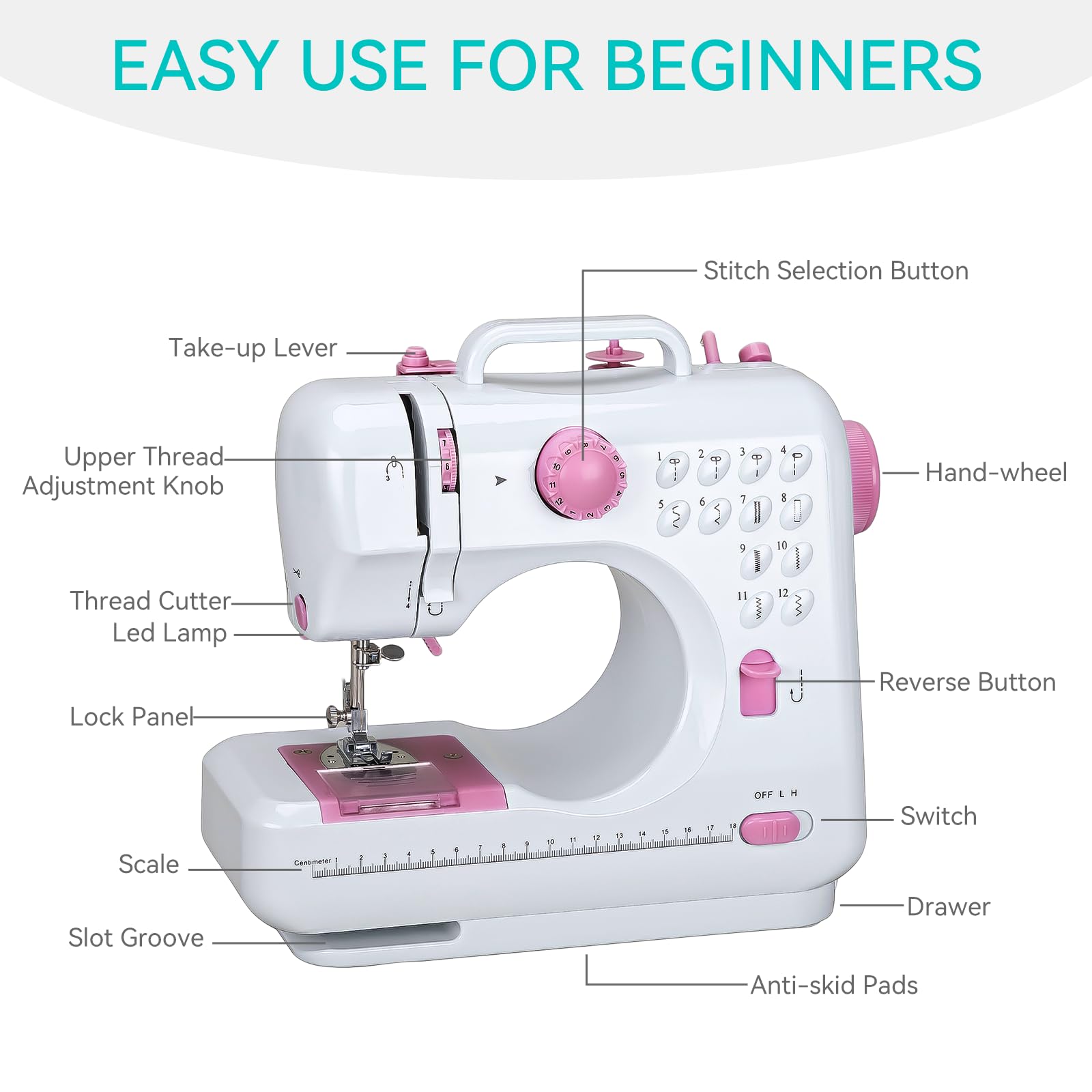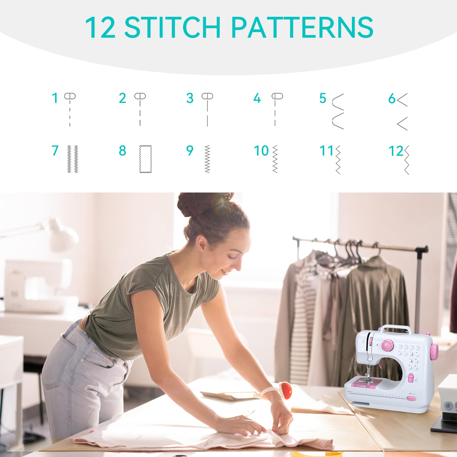 12 Built-in Stitches & Dual Speed Control: Choose from 12 preset stitch patterns, including straight, zigzag, and decorative stitches, to handle a variety of sewing projects. The dual-speed control ensures precision for both delicate fabrics and thicker materials