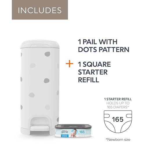 LONG-LASTING REFILL - includes a starter square refill that can hold up to 165 newborn-sized diapers and is compatible with our Diaper Genie Jumbo square refill that can hold up to 810 newborn-sized diapers.
