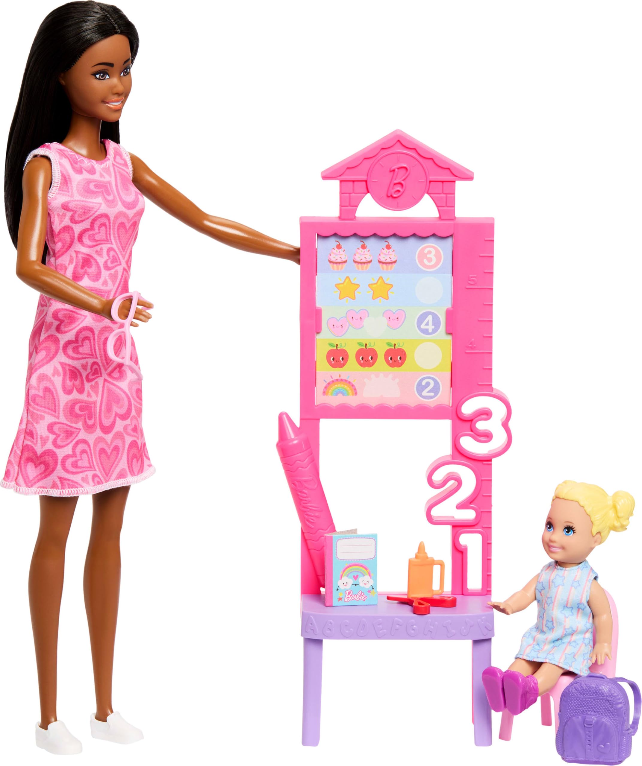 Young dreamers can explore the world of teaching with the Barbie Teacher doll and playset!