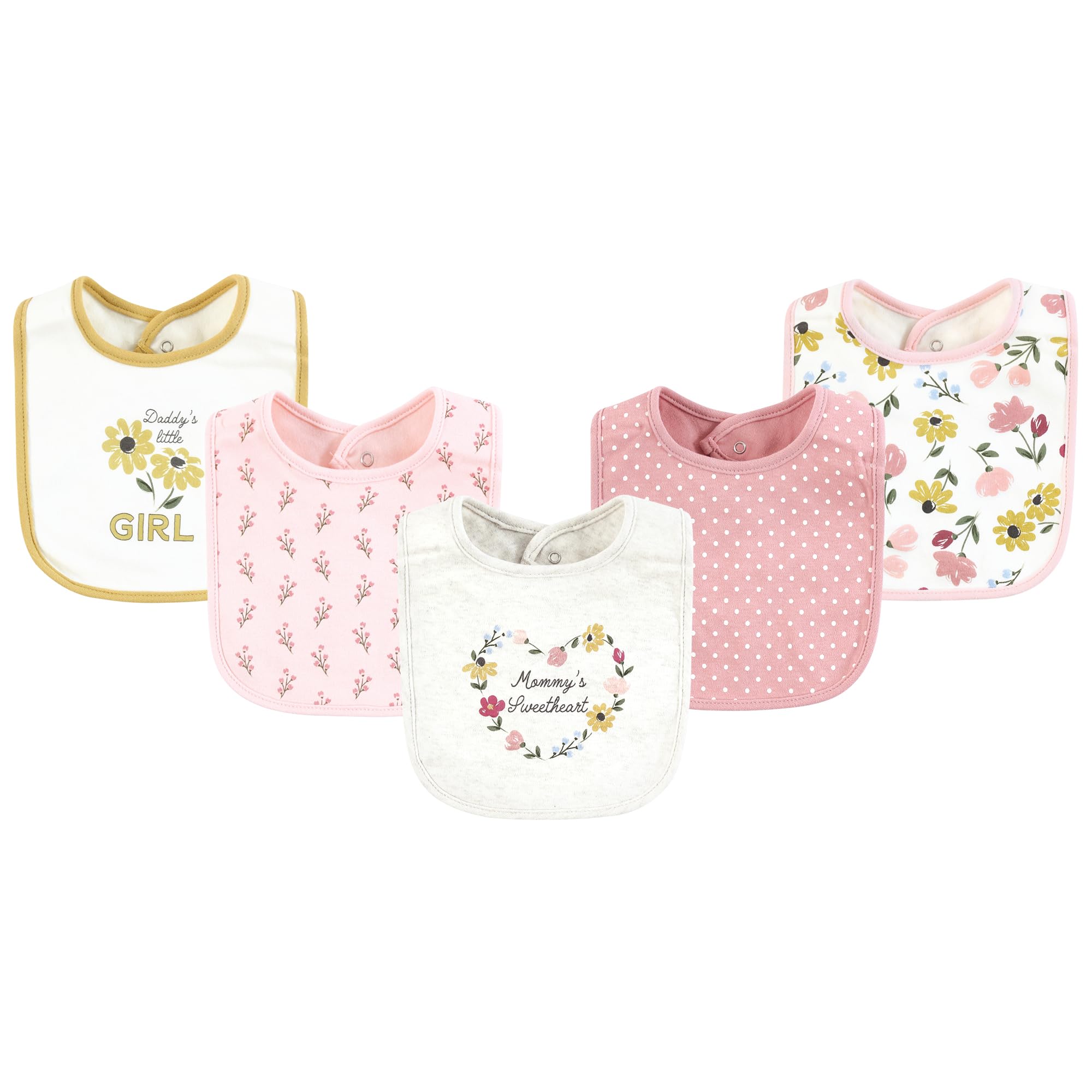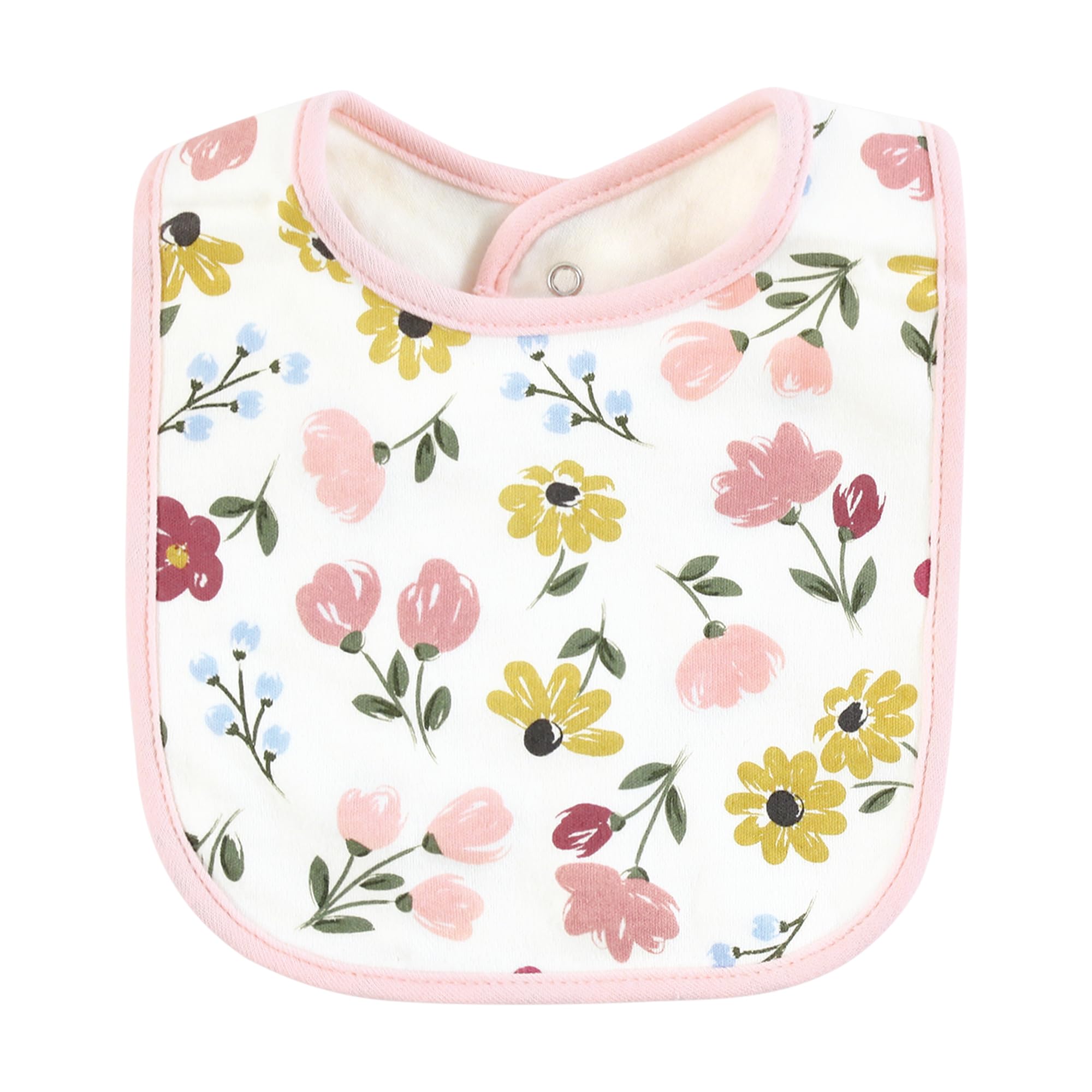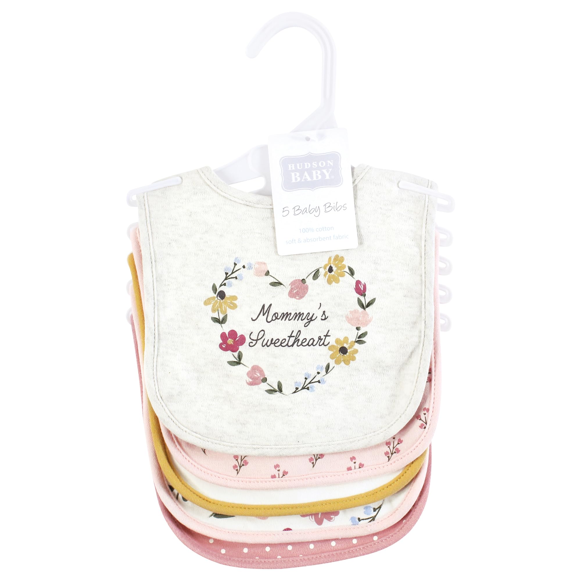 Hudson Baby interlock cotton drooler bibs are fashionable baby bibs made with two layers of soft, gentle cotton. Our bibs feature cute prints and embroideries and are great fashion bibs over baby's clothes to keep their outfits clean. Our bibs are great for drooling, feeding and more.