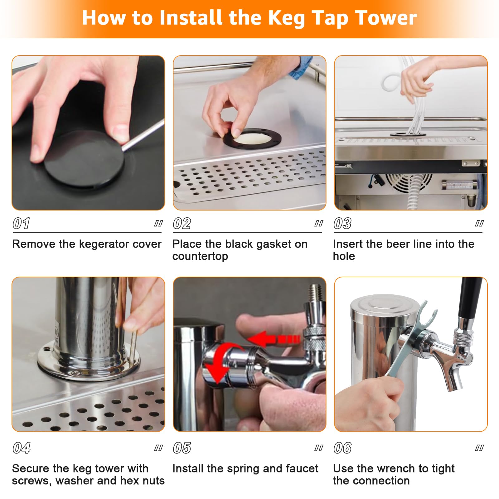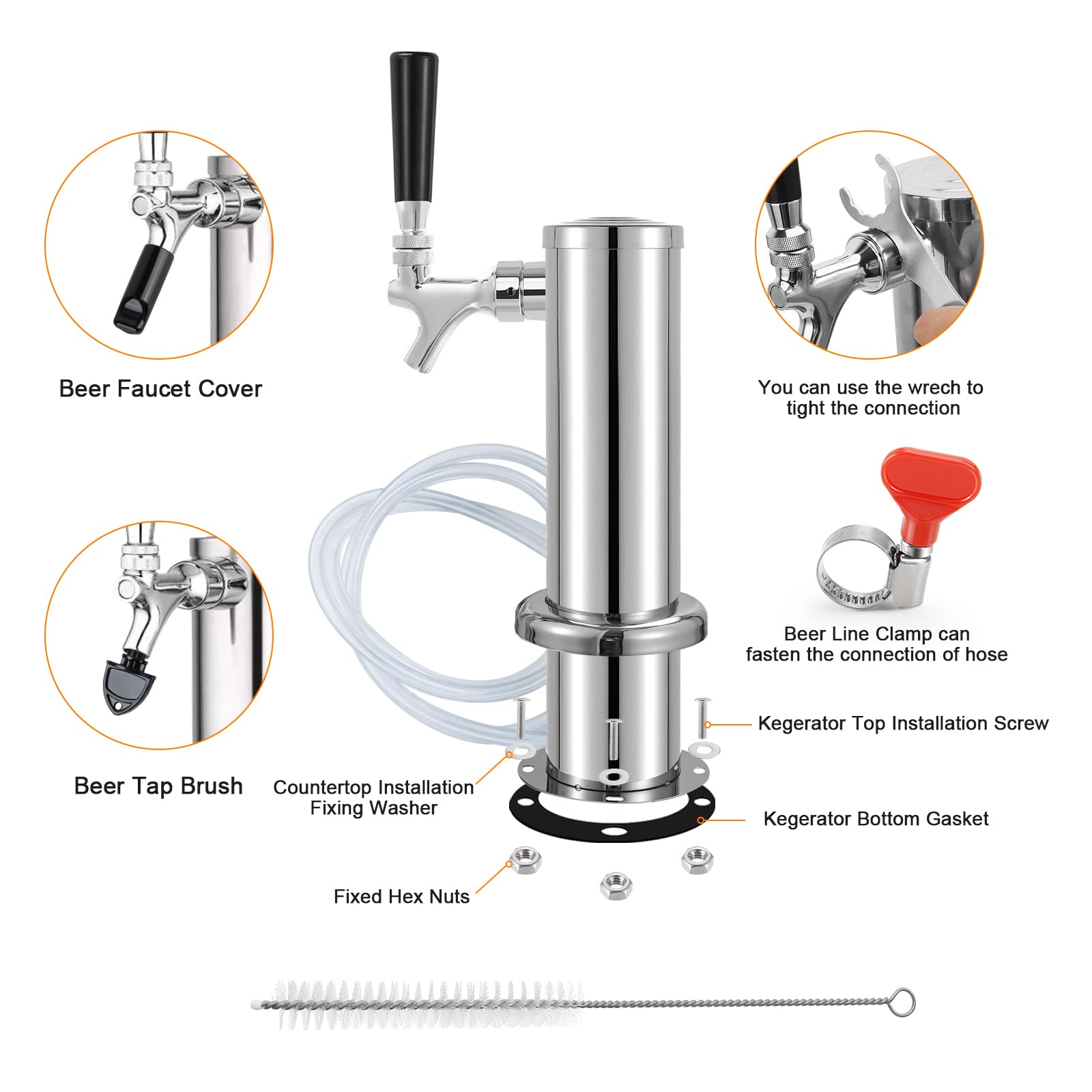 EASY INSTALLATION: The kegerator tower kit inside beer faucet shanks and beer line are pre-assembled, and all installation accessories are included, allowing for quick setup within minutes. It can be installed on a kegerator (no drilling required) or a countertop (drilling required), providing convenient use