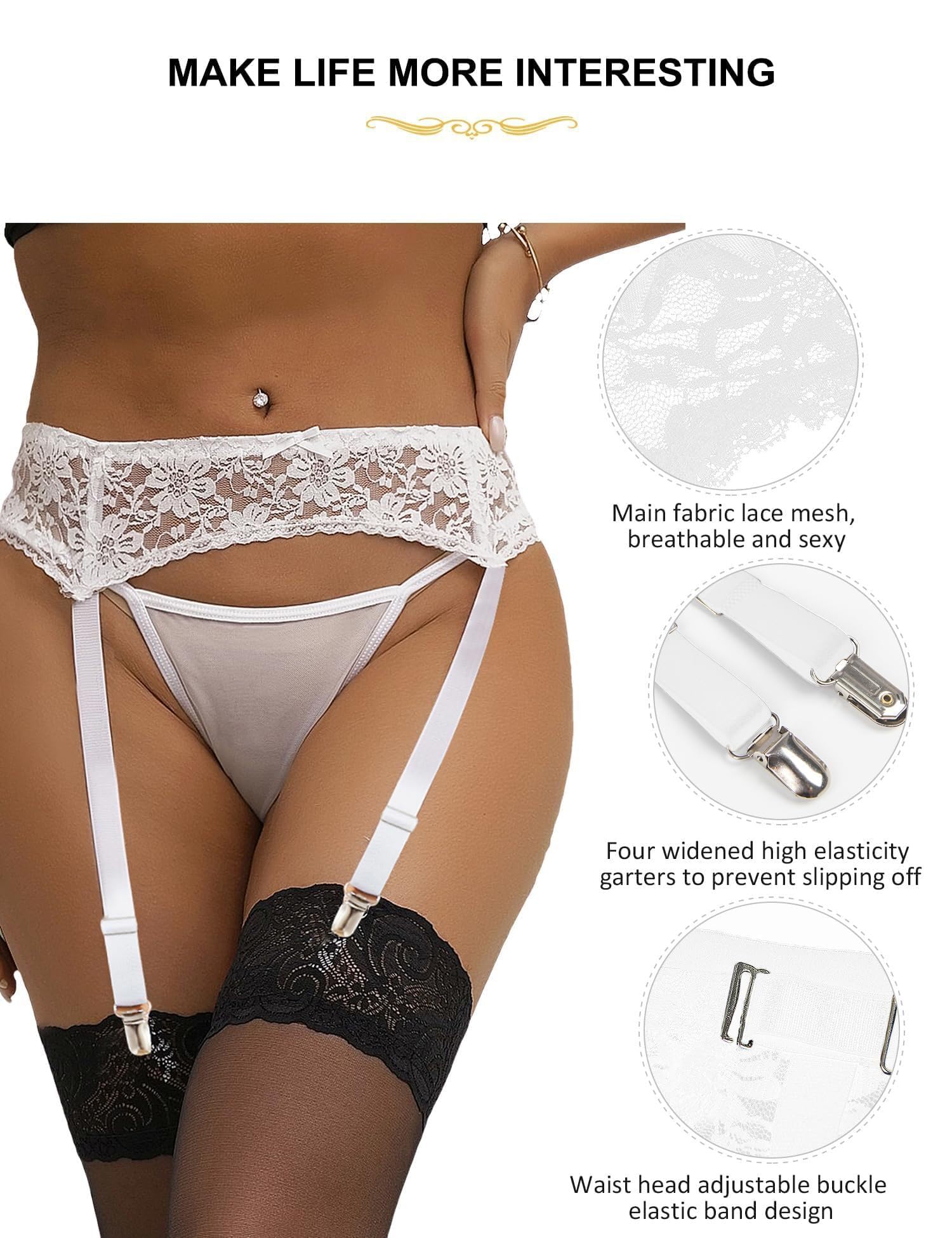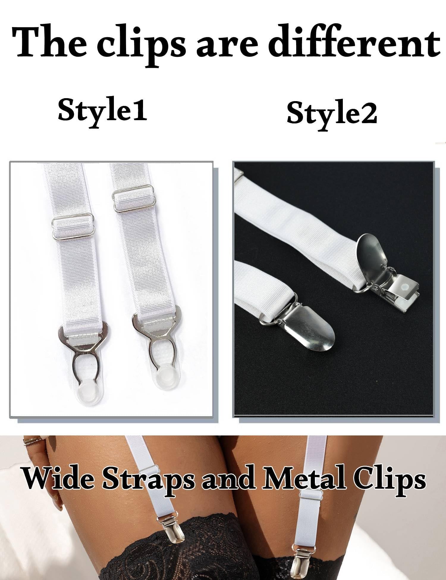 Adjustable Garter Belt Plus Size: White lace garter belt is great tensile strength and elasticity. 4 widened adjustable straps with metal clips for thigh high stockings,Not easy to fall off(The difference with style 2 is the clip is different, other consistentοΌ