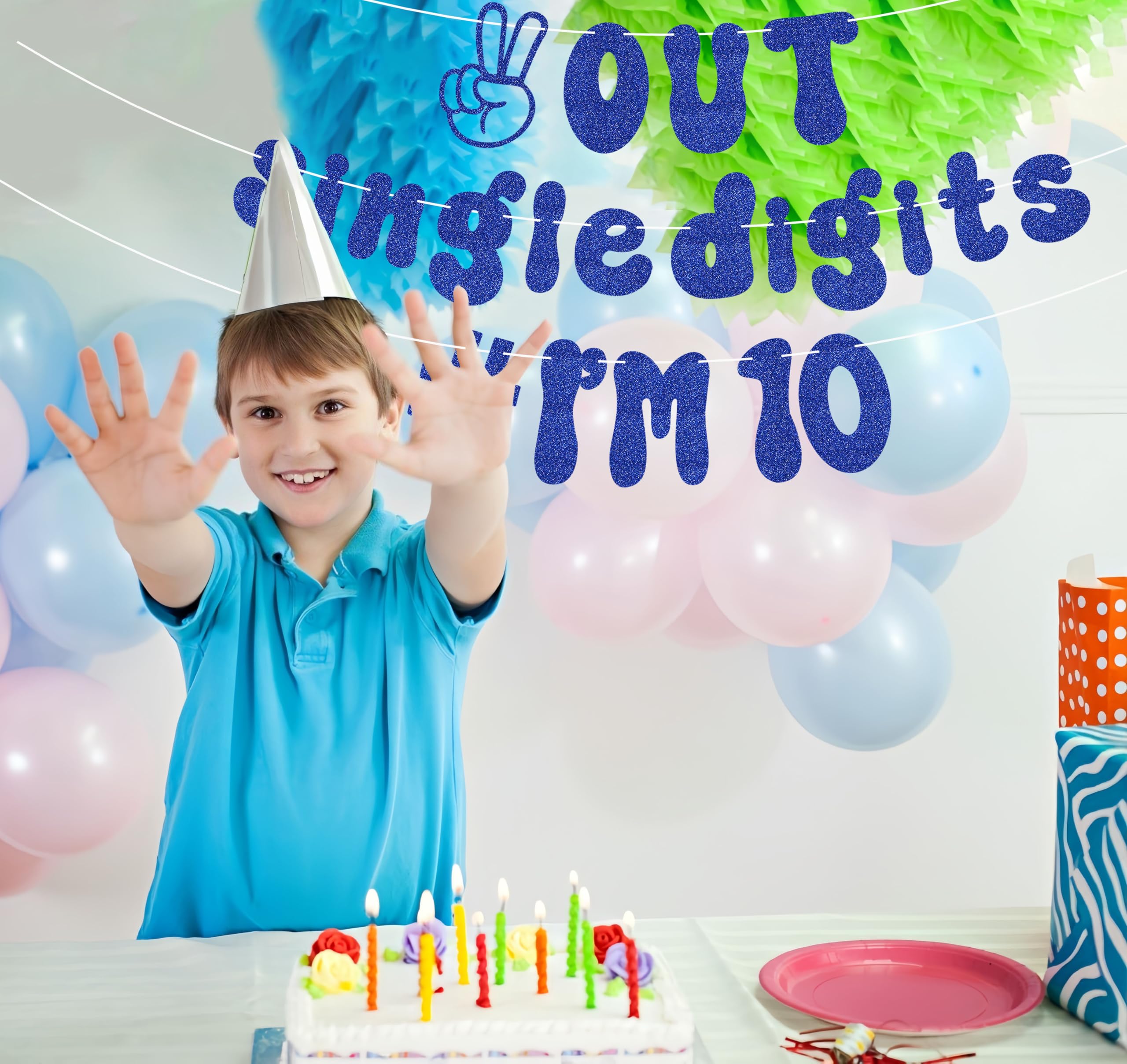 Pre-Strung 10th Birthday Banner - This out single digits I'm 10 banner is made up of 21 sparkling letters and patterns. The 10th birthday banner pre strung on 60 inch ribbon, will not let you waste time assembling.At this moment, all you need to do is hang up the double digits 10 banner and welcome the 10 birthday party