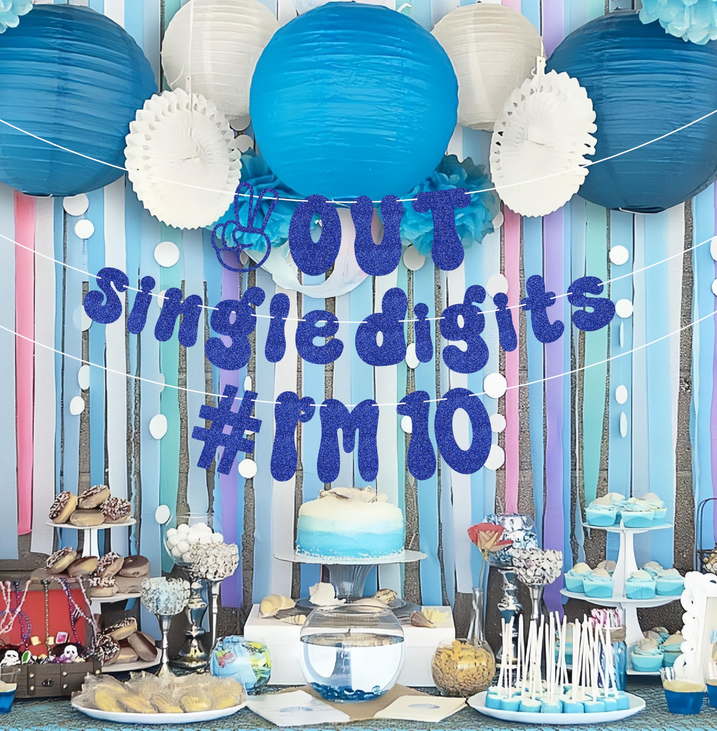 High Quality Cardstock - Each double digits 10 banner is made of blue 350GMS thick cardboard, which is sturdy and durable, effectively preventing damage during transportation. This 10th birthday party decorations supplies is a true flash that shines from every angle, providing a unique touch and illuminating the entire gathering venue