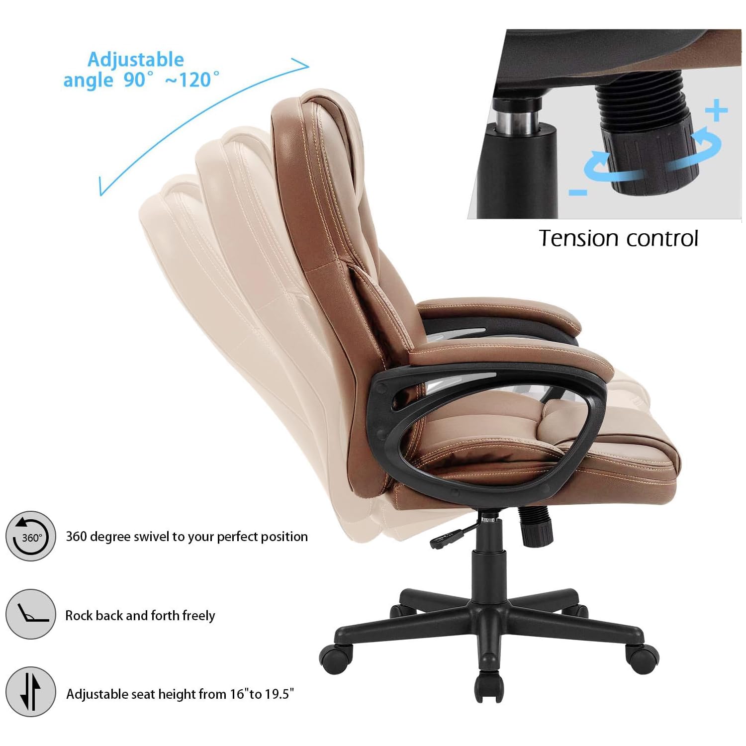 Comfortable High back office chair with cushioned back and seat upholstered provide extra support,large thick pad, soft texture slow down the pressure of the sedentary