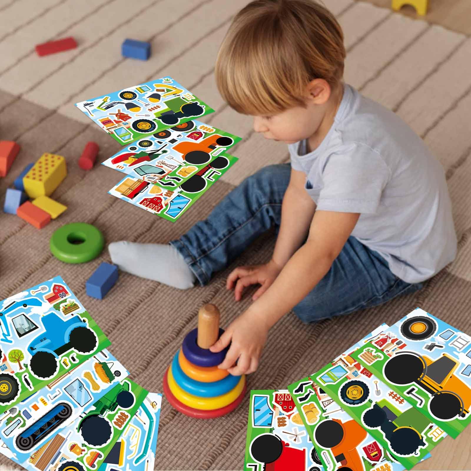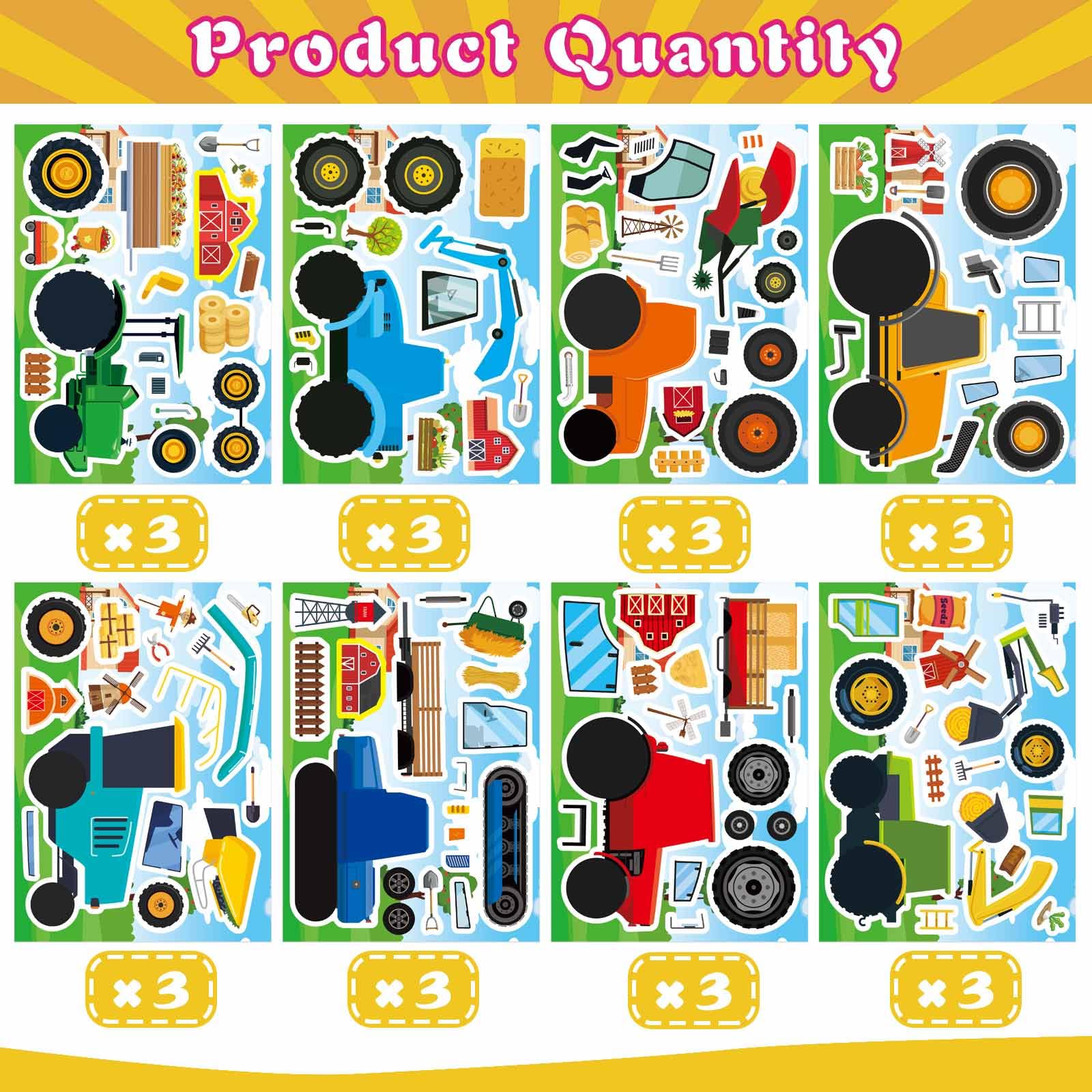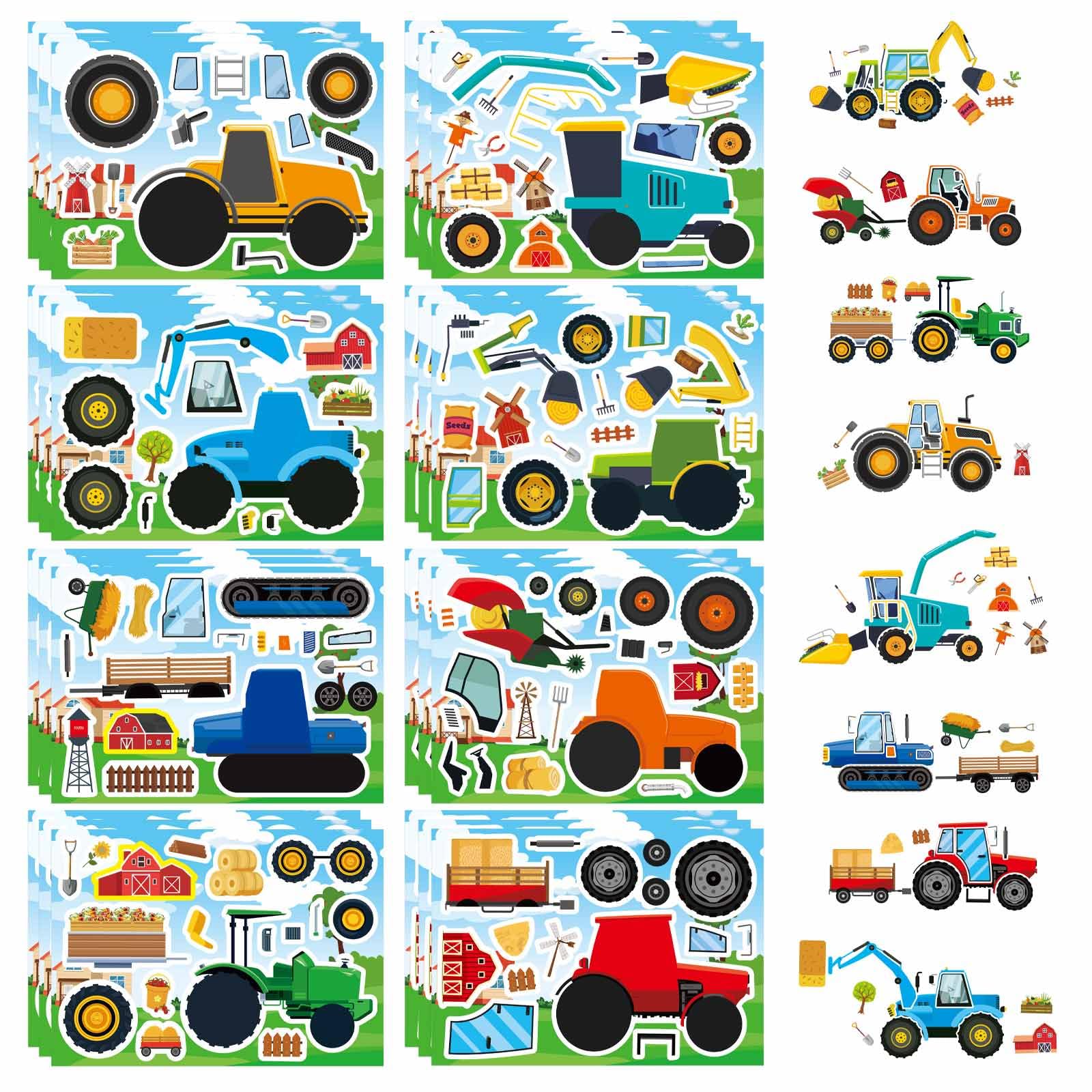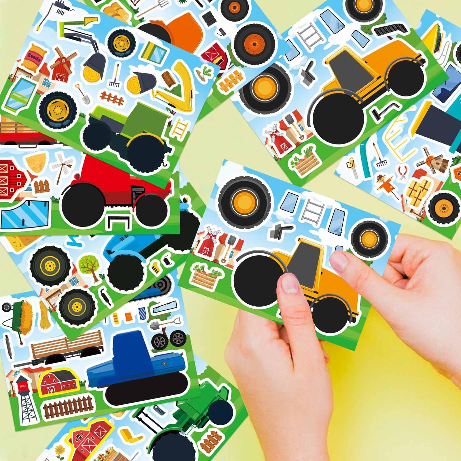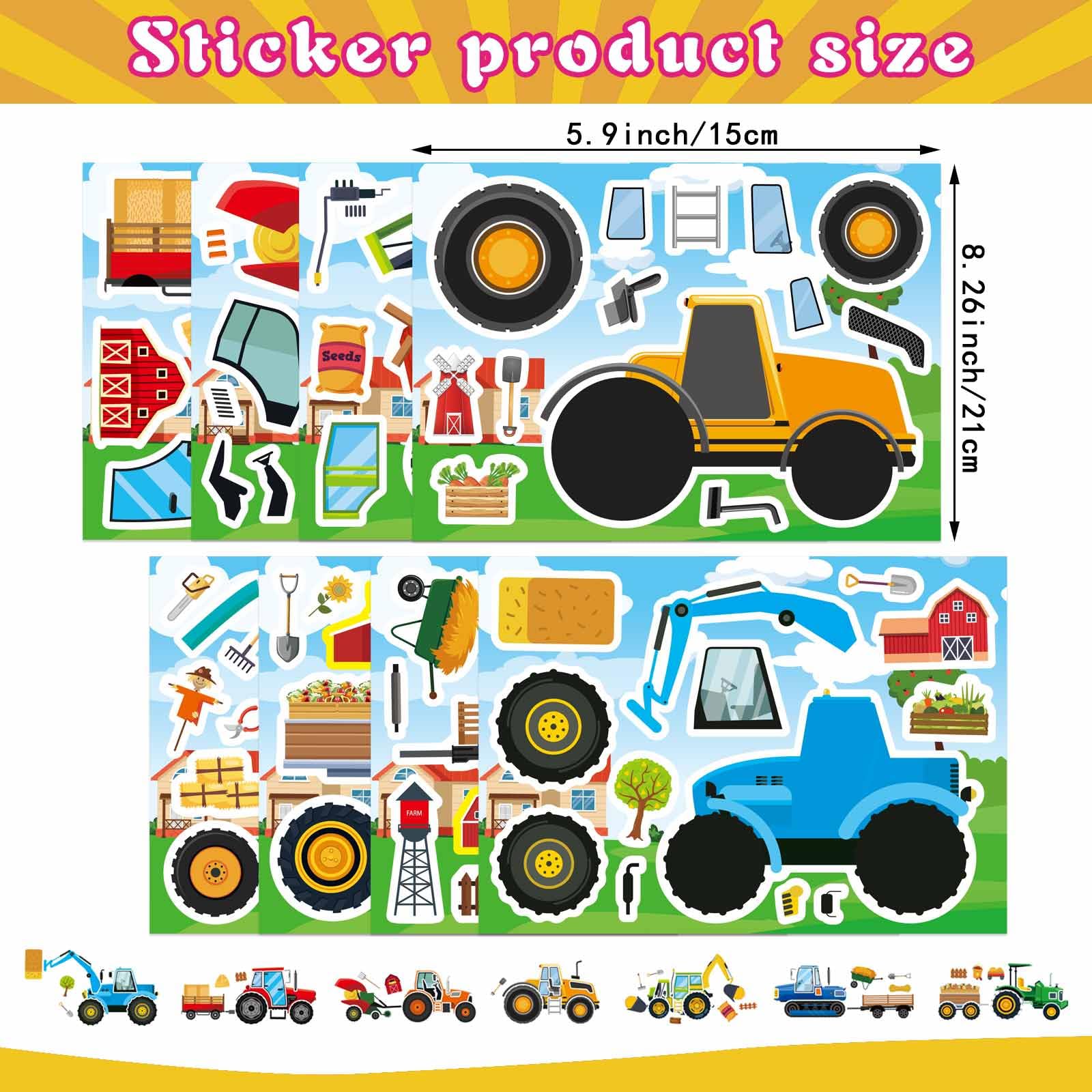 Make Your Own Farm Tractor Stickers:You will get 8 unique tractor designs with 3 stickers each! Includes wheels, farm tools, accessories for endless creative fun. Perfect for kids to build their dream farm scenes & enjoy family crafting time.