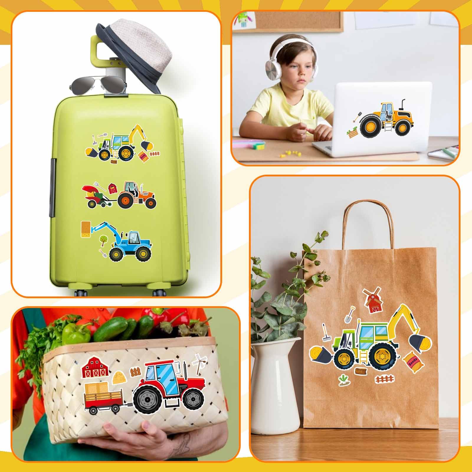 Durable & Safe Tractor Stickers:Made with thick, glossy film coating for waterproof & tear-resistant use. Non-toxic, odor-free & easy to peel - ideal for little hands. Sticks smoothly to notebooks, walls, toys & more!