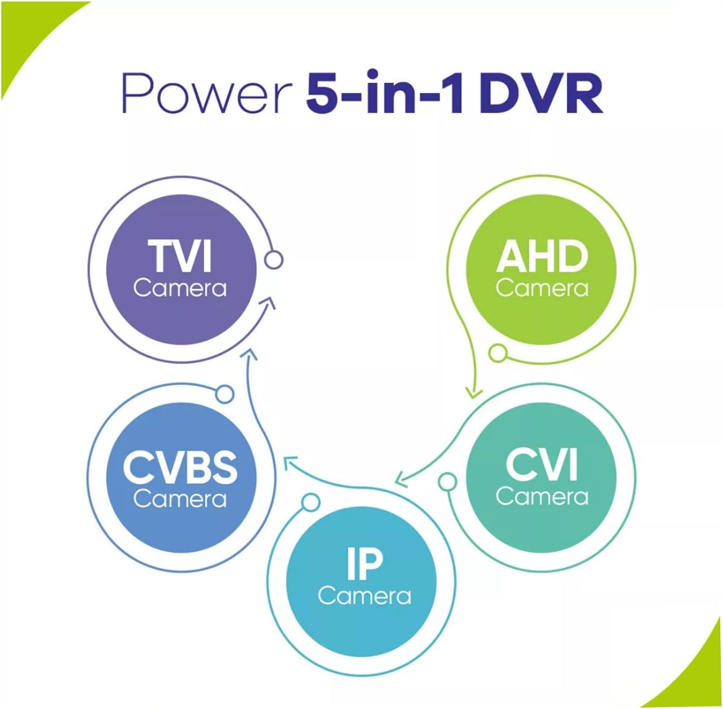 Powerful 5-in-1 Hybrid DVR: Real HD digital video record combing the features of DVR & NVR, supports 16 channel analog camera. Meet all the needs of the customer, no matter whether you use AHD/CVI/TVI or IP cameras. It is highly recommended that this DVR works with our brand Real HD wired cameras to achieve optimal performance.