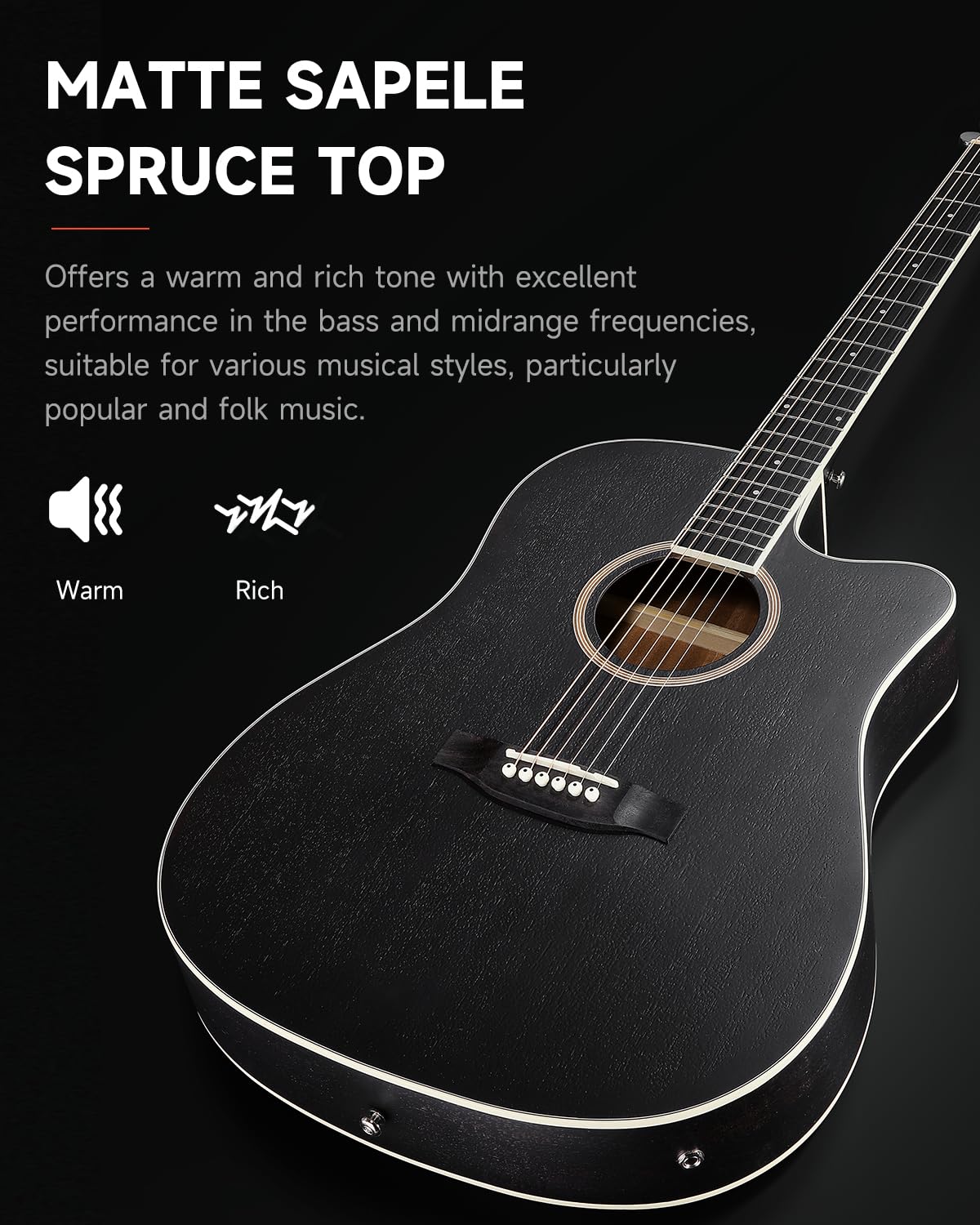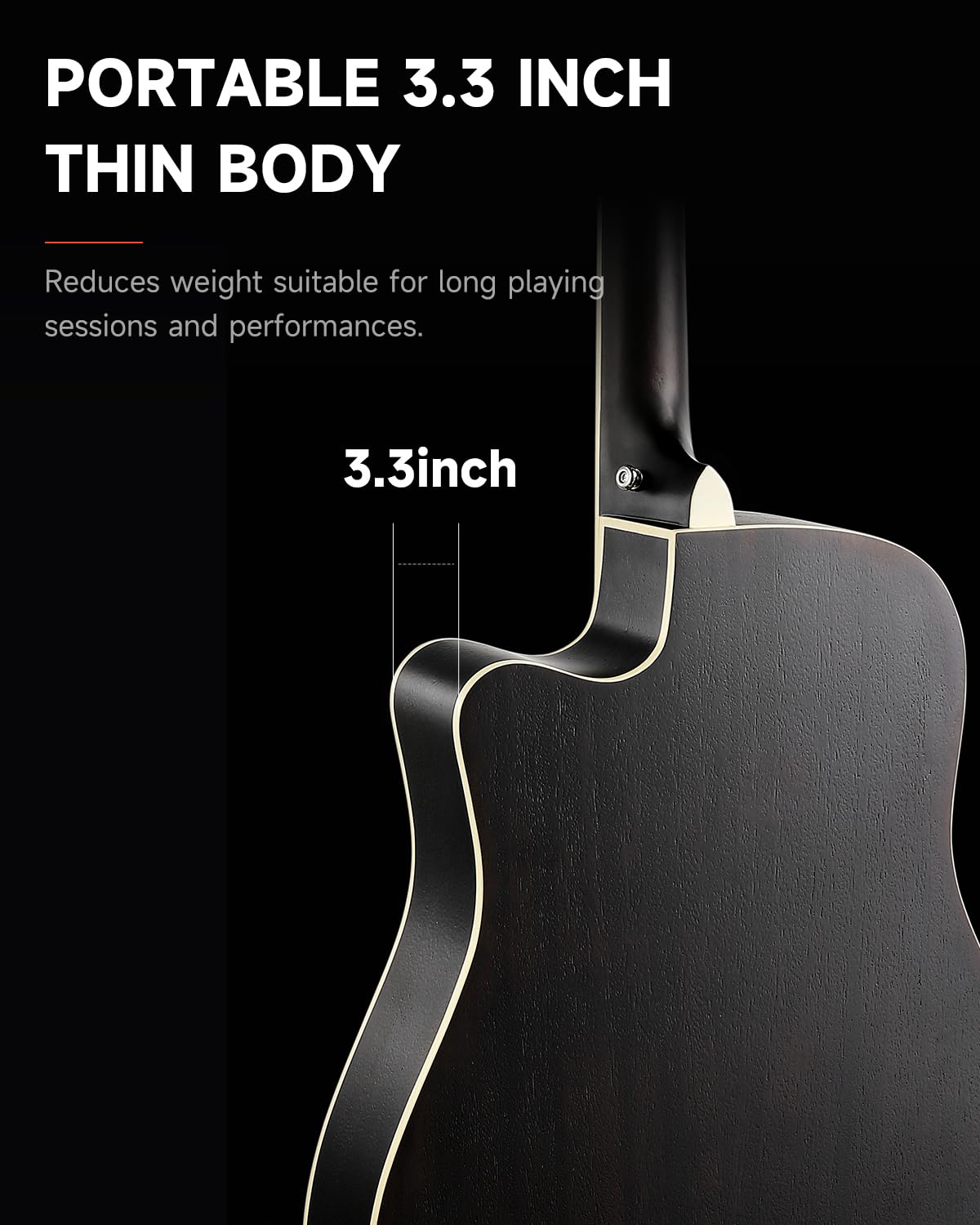 【41-inch Slim body】Classic full-size guitar with a 3.3-inch thin body, lightweight and easy to carry, perfect for on-stage performances