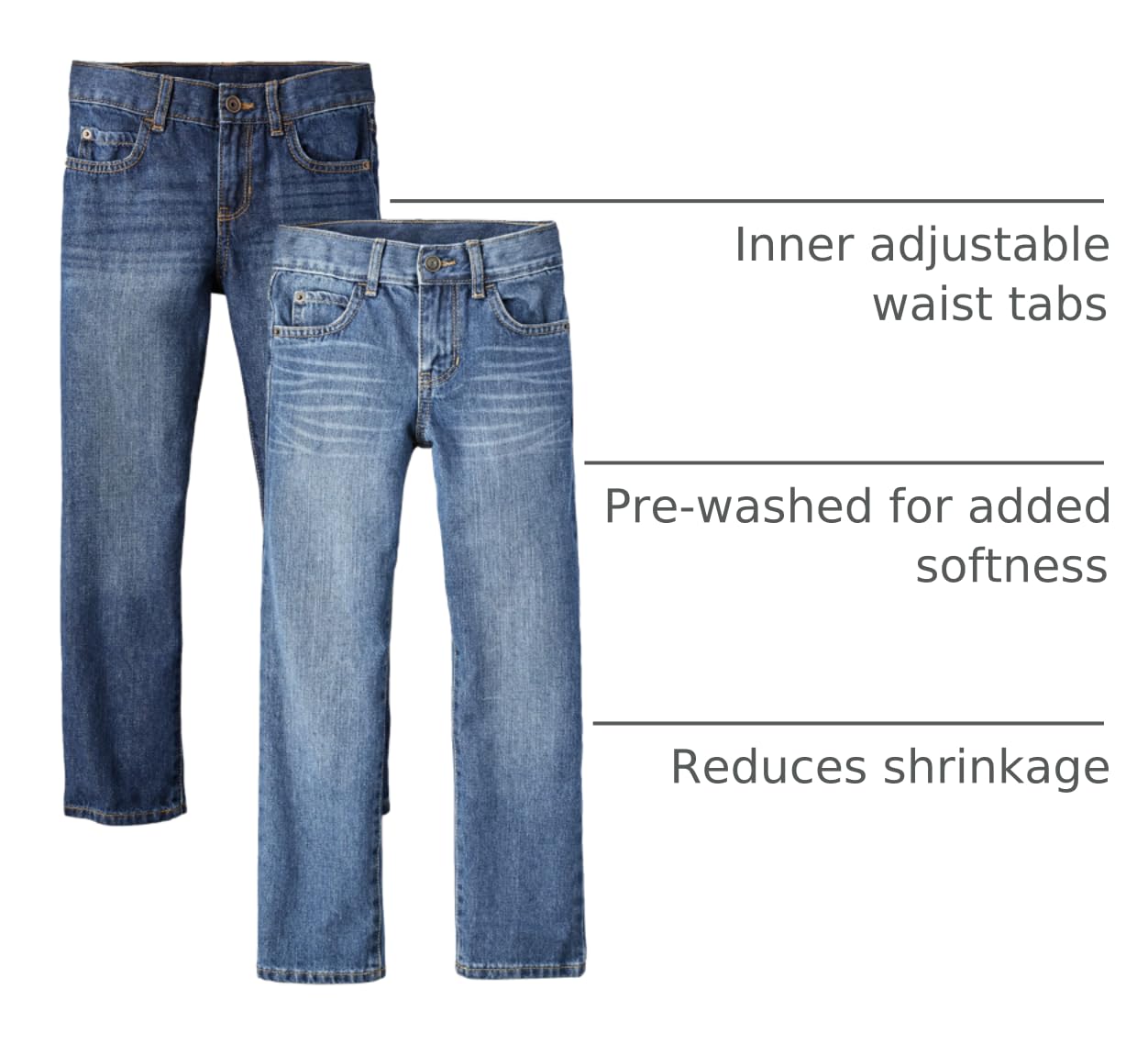 MULTIPACK — 2-pack of basic straight jeans features handsanding and whiskering for a lived-in look, five-pocket styling and belt loops: 1 pair in our Dark Jupiter Wash; 1 pair in our Carbon Wash
