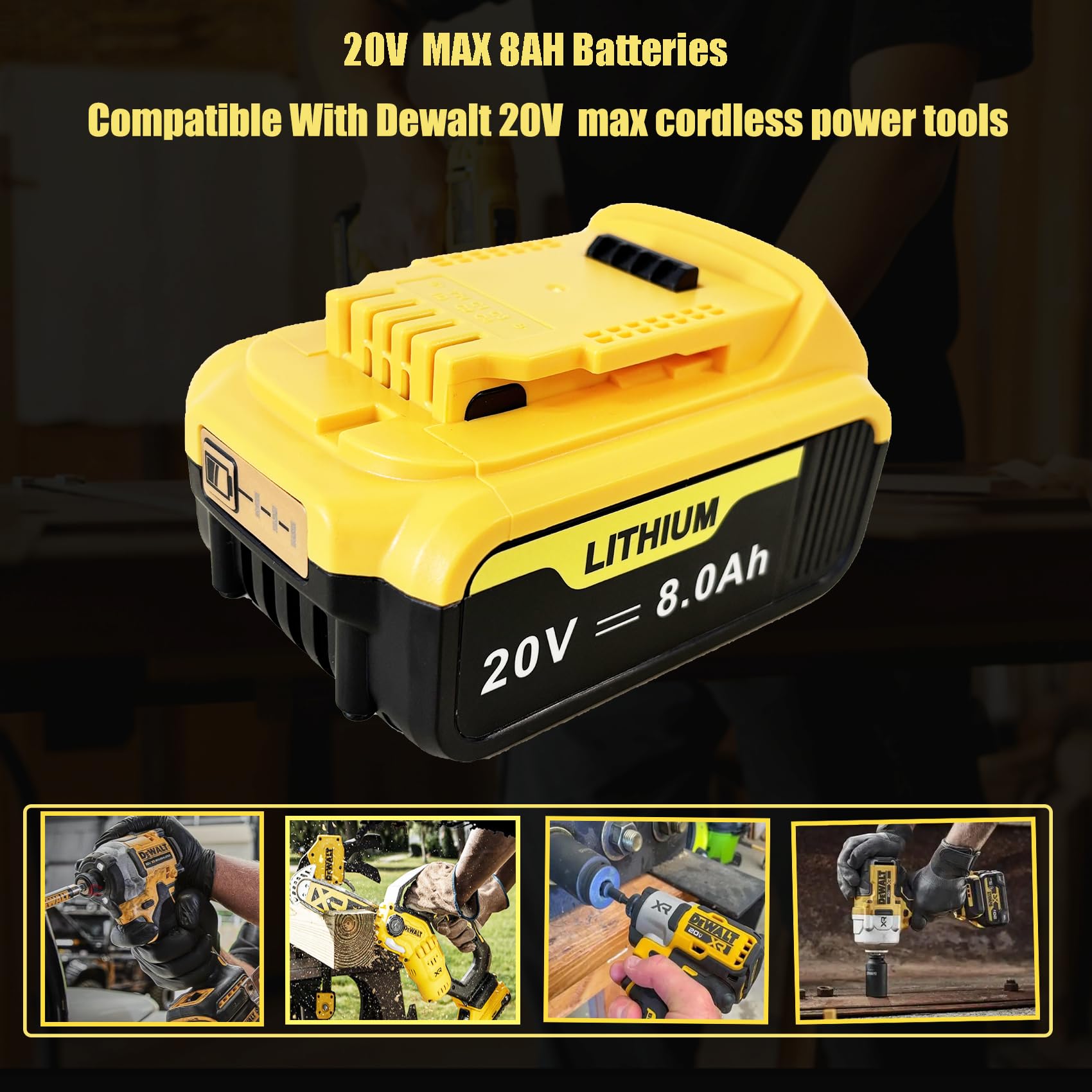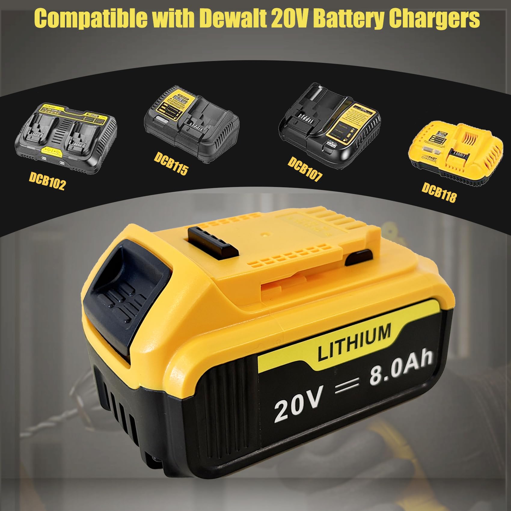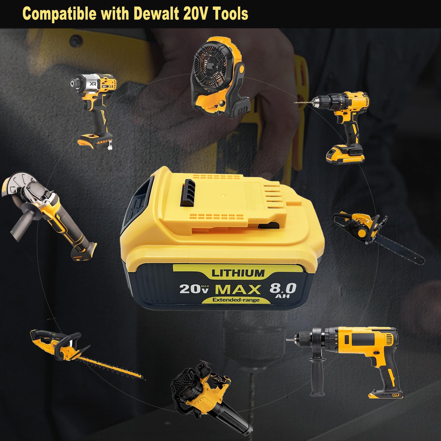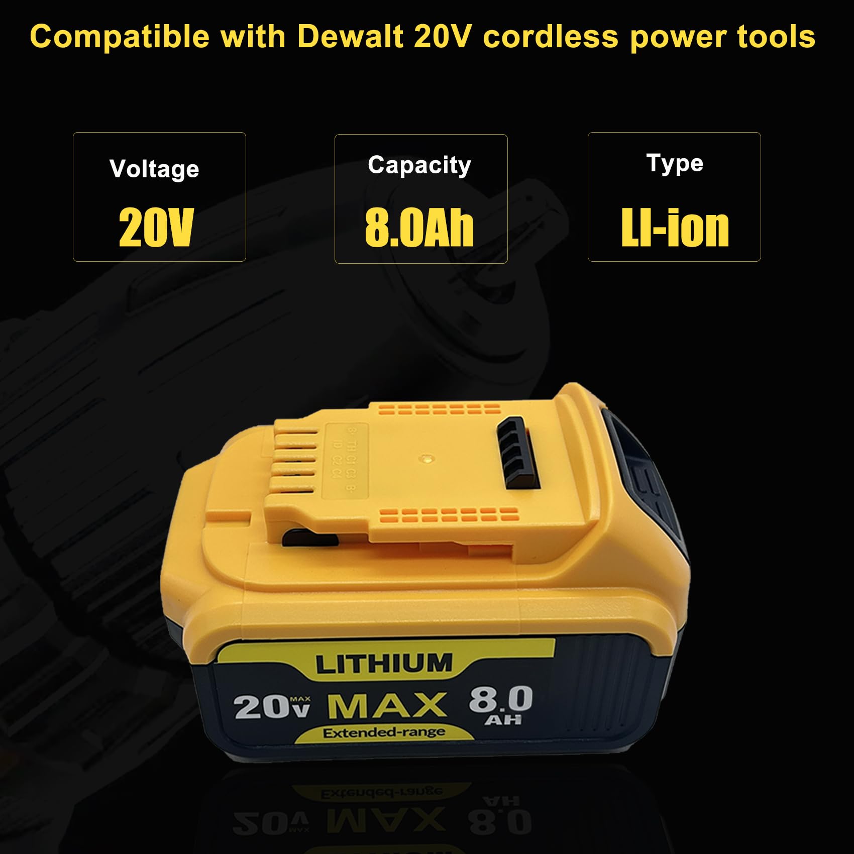 【Battery Details】Brand New | Voltage: 20 Volt | Capacity: 8000mAh Replacement Battery for Dewalt 20V Battery | Package Include: 2Pack Battery for Dewalt 20V Battery.