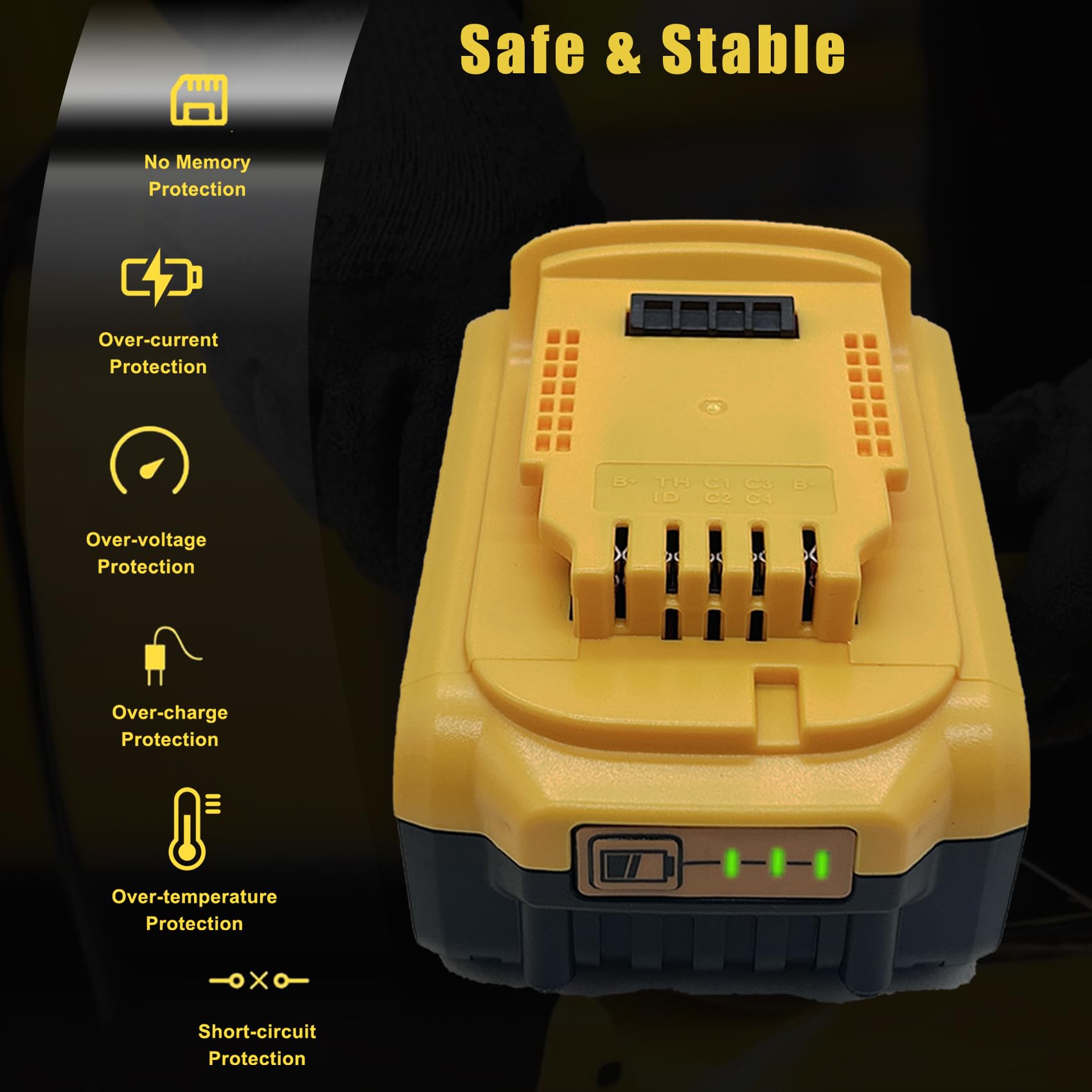 【Safety Reliable】 All of the for Dewalt 20 Volt battery are CE FCC MSDS certified, tested by manufacturer to match OEM products. Built-in circuit protection for safety and stability.