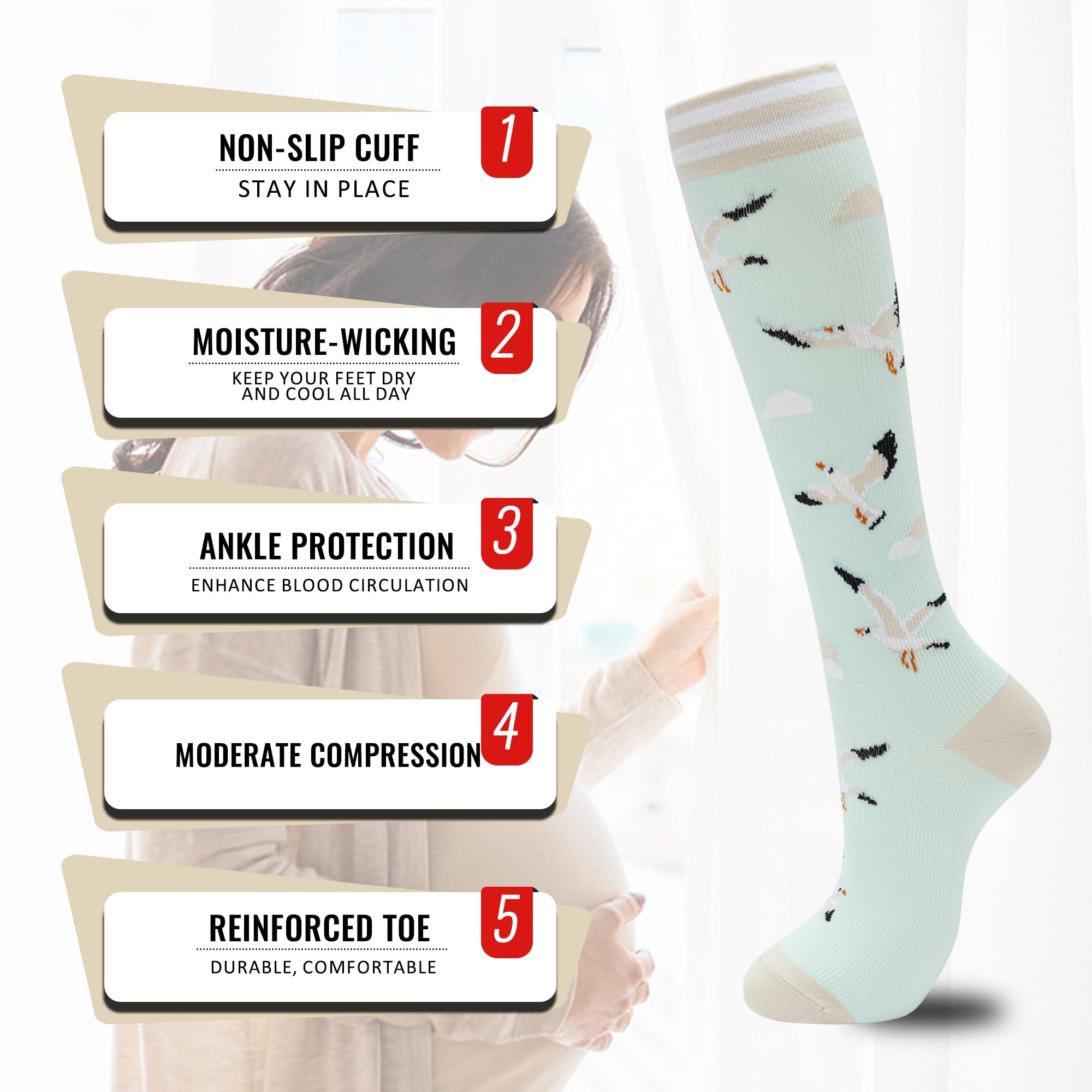 SUITABLE FOR VARIOUS OCCASIONS Support compression socks are suitable for a variety of people, whether you are nurses, runners, joggers, pregnant women, office workers, airplane travelers, or on other occasions, They can promote blood circulation and reduce pain. It is an indispensable part of your life