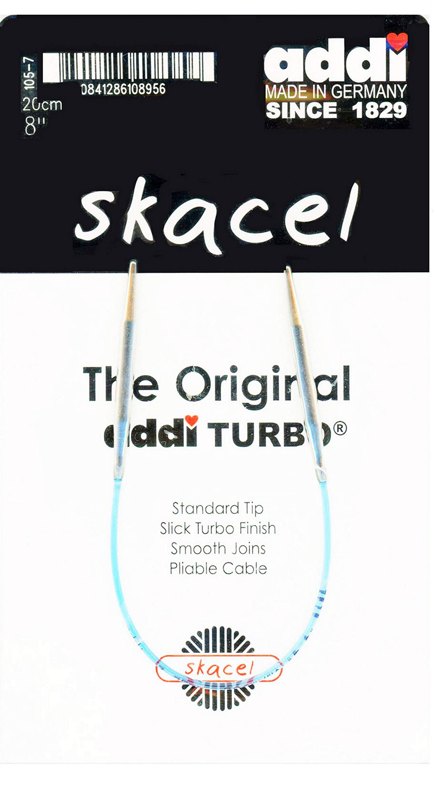 CONSTRUCTION: addi Turbo is the circular needle that started it all and the true choice of professional knitters worldwide; addi Turbo needles now feature white bronze finish and the Skacel exclusive ultra-pliable blue cords and snag-free joins