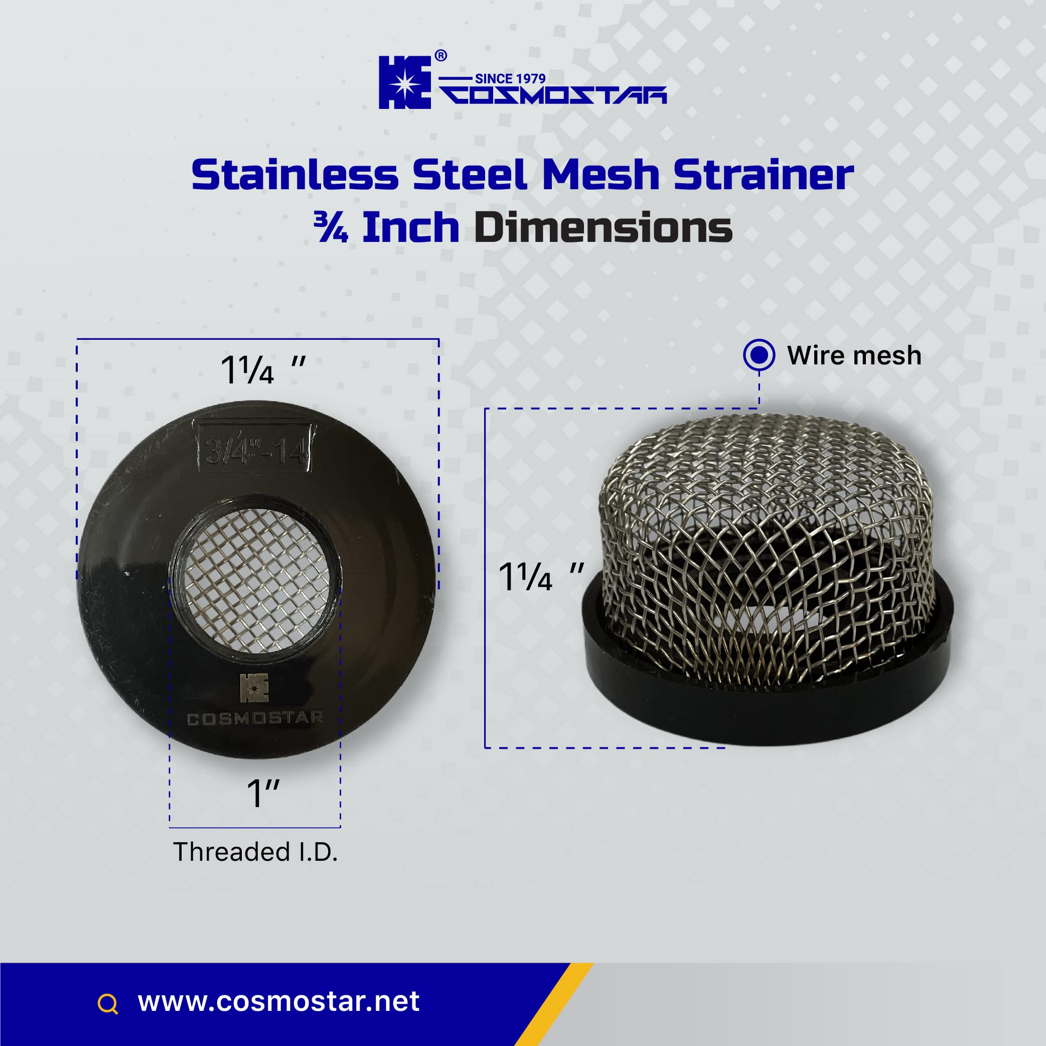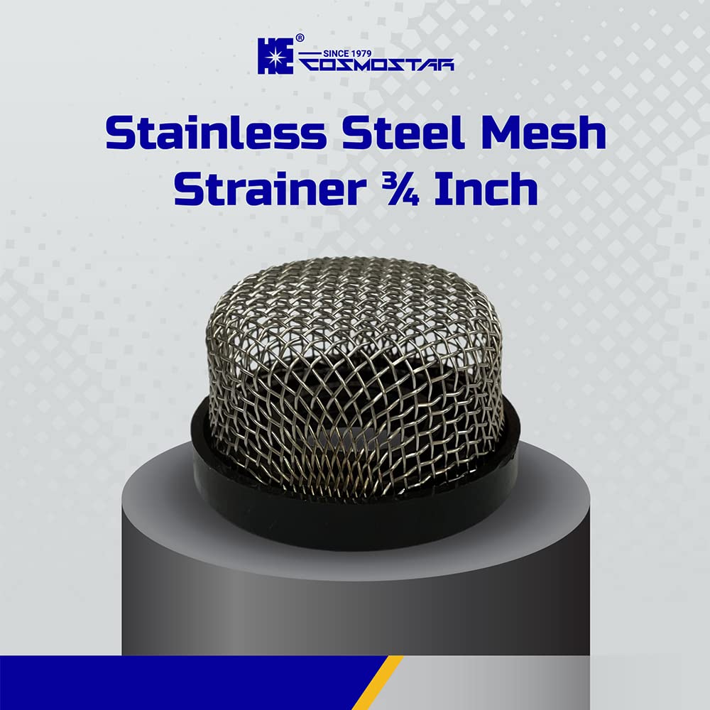 【Specification 】Fits ¾ Inch - 14 Female Thread: the stainless steel mesh strainer fits ¾ inch - 14 female thread, please consider this before purchasing. The mesh strainer is made of stainless steel, firm and not easy to bent, with corrosion resistance, the base is molded of PVC plastic, with high-temperature resistance and a perfect match to your pumps.