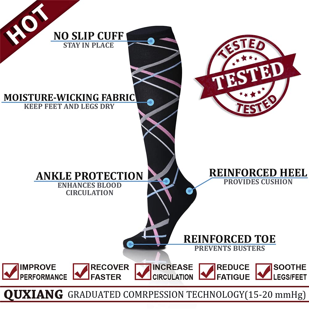 COMPRESSION BENEFITS - QUXIANG Compression socks are designed to promote blood circulation and oxygen flow preventing fatigue and helps in muscle recovery. Whether you are an athlete, sportsperson, teacher, flight crew, receptionist, office worker, pregnant, recovering patient, nurturing mother, elderly, our socks are universally suitable for all work.