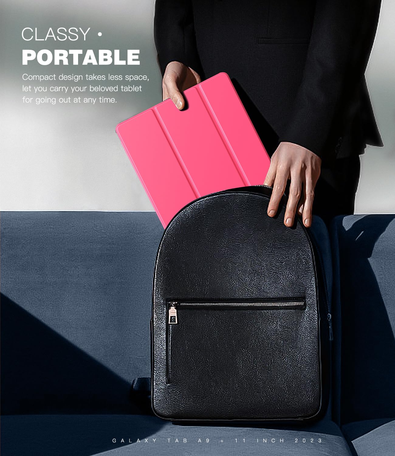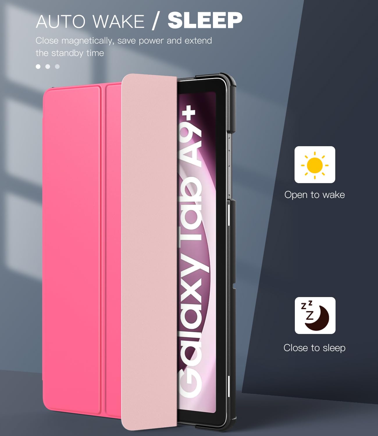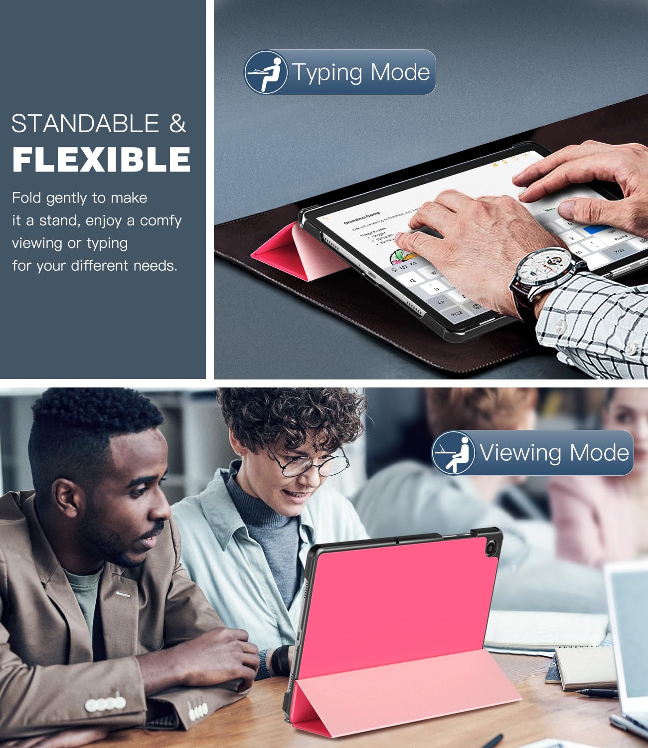 Adjustable Stand Angles: The top of this Galaxy Tab A9 Plus Case folds back to make a stand, which provides a sturdy stand position for both viewing and typing. Free your hands when watching, reading, or writing, a good way to alleviate neck strain