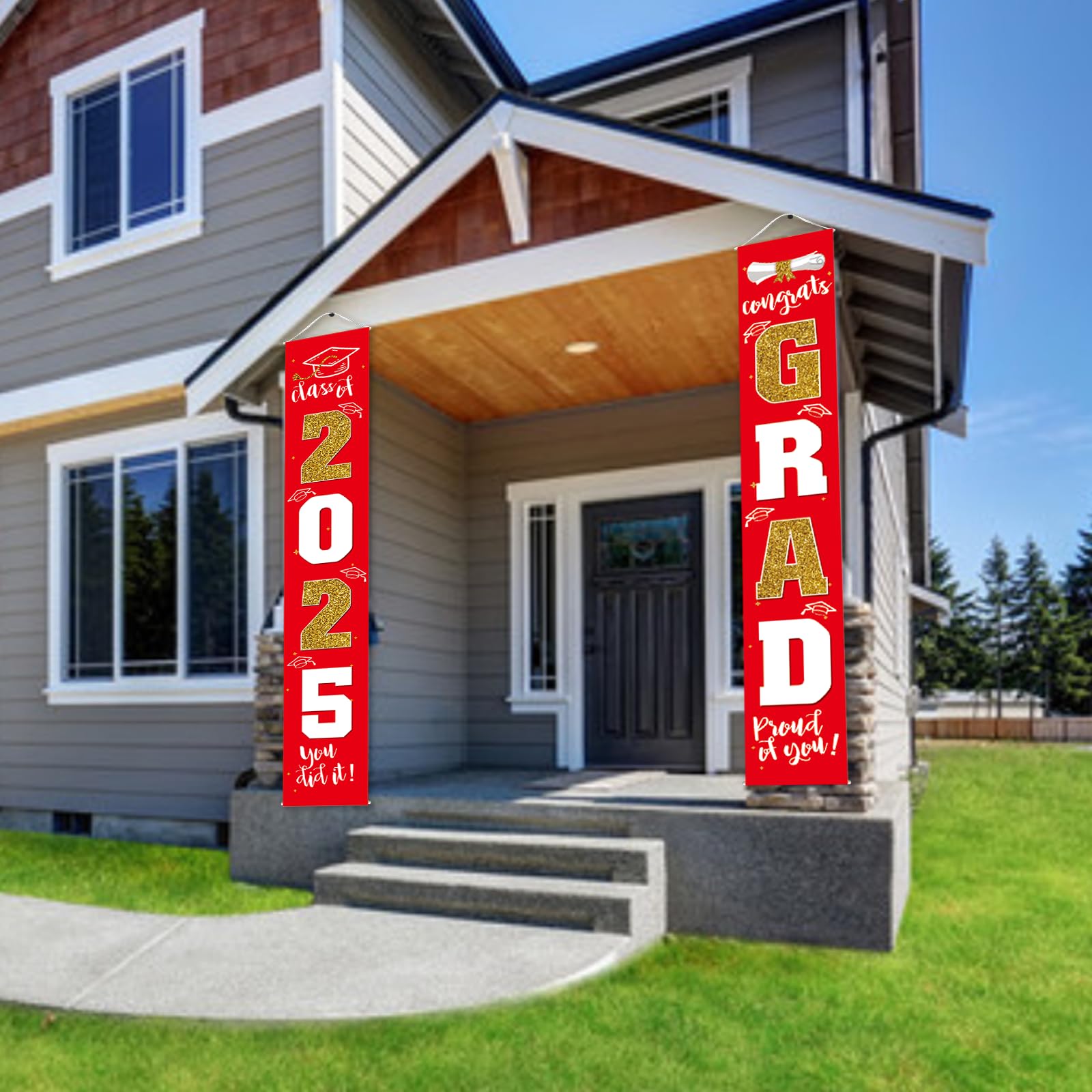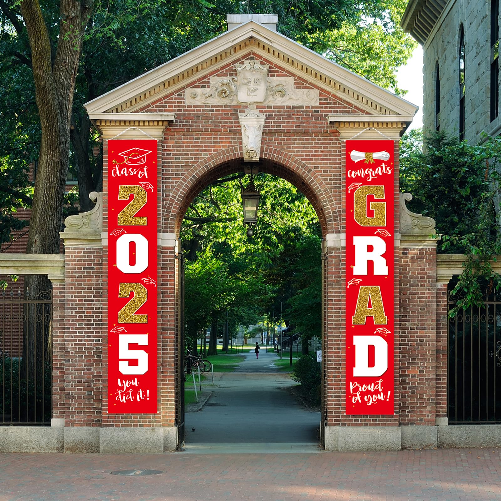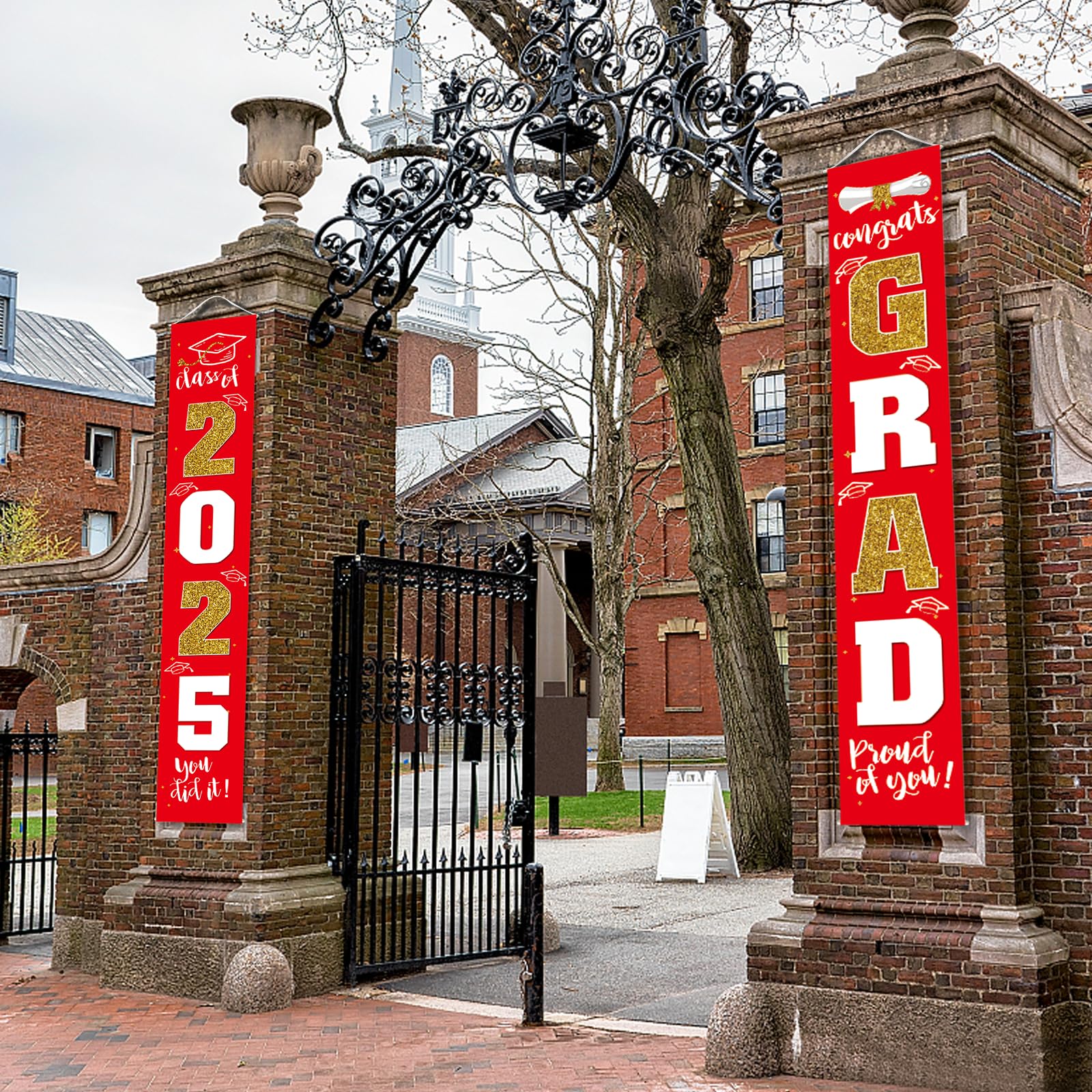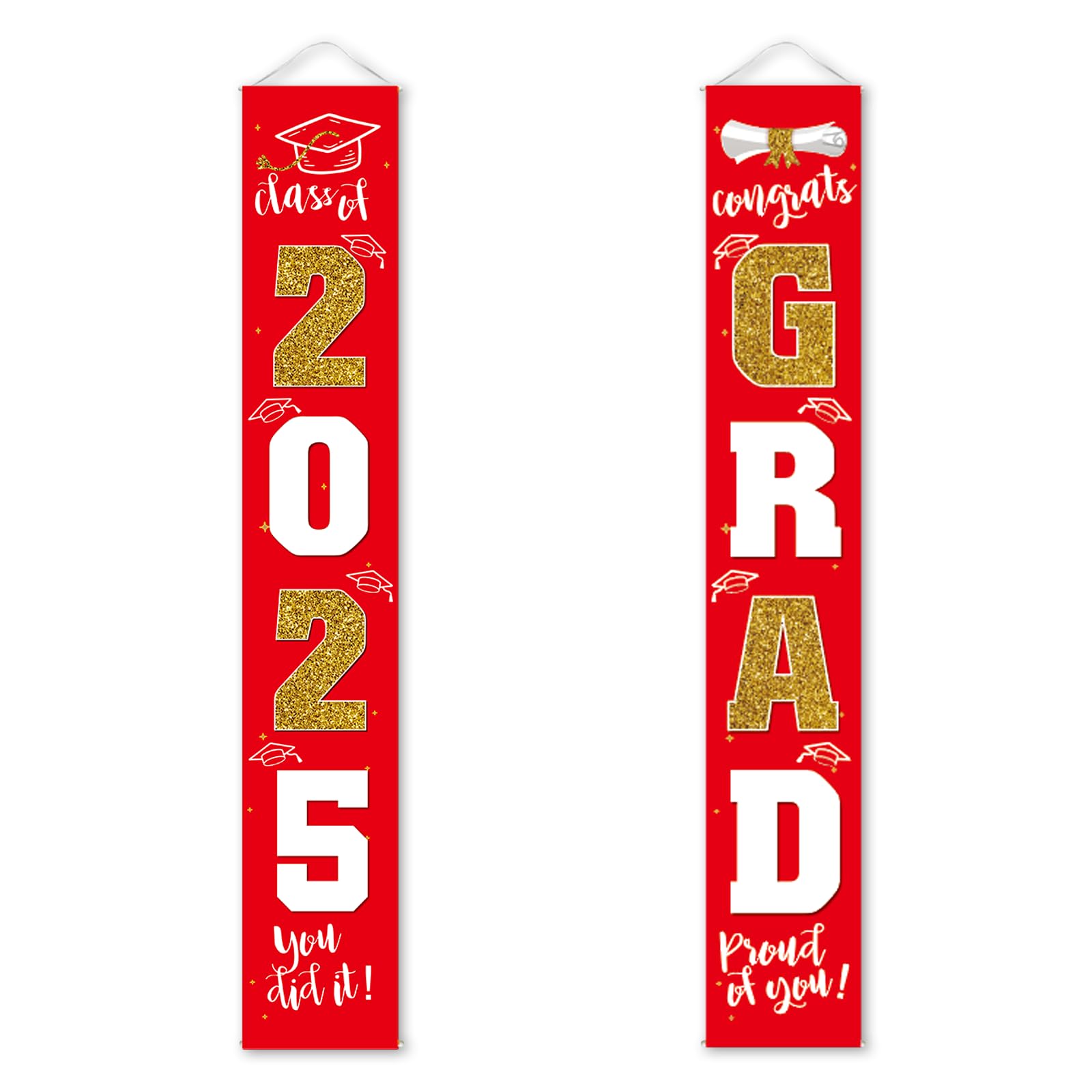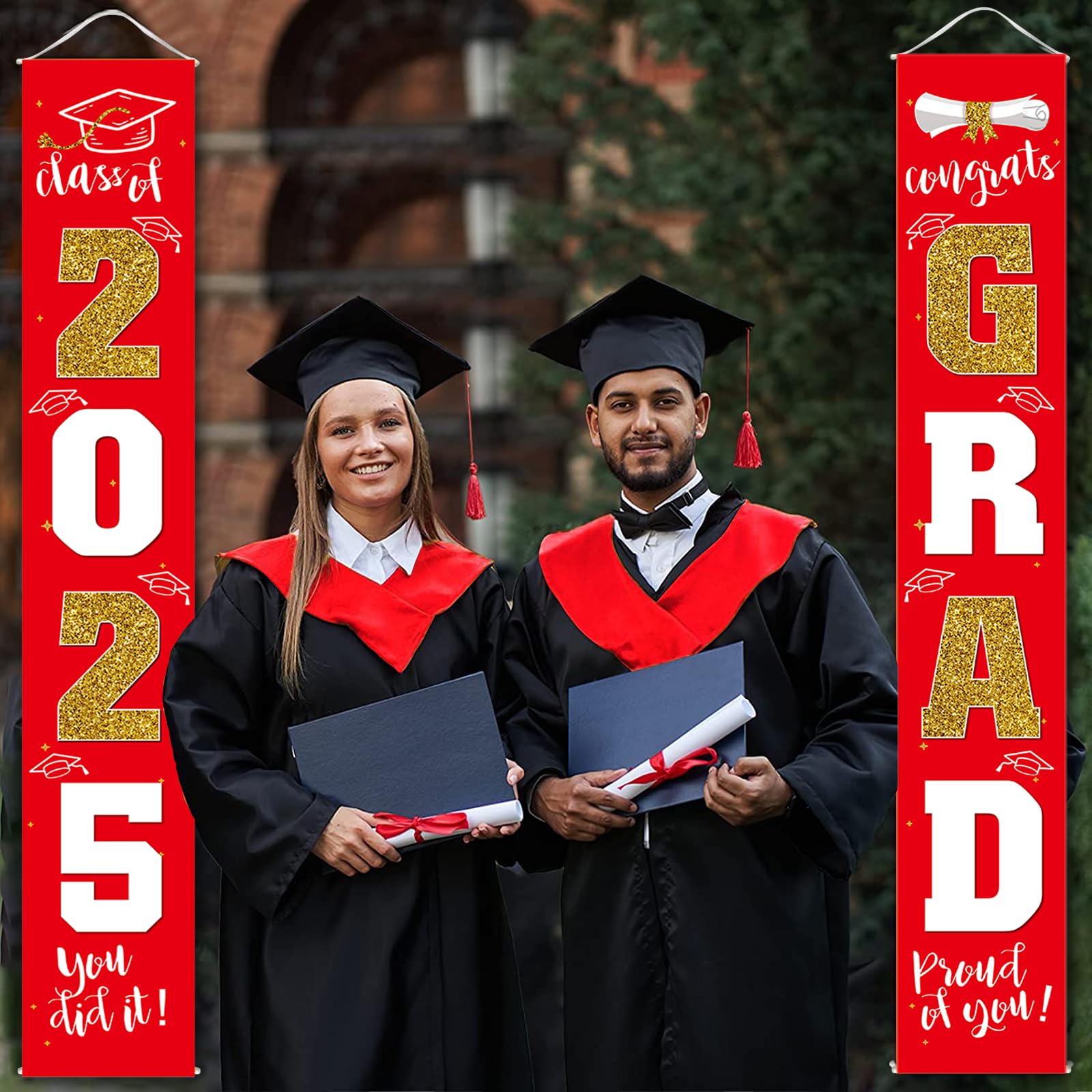 GRADUATION DECORATION 2025: 1 Class of 2025 banner and 1 congrats GRAD banner. Size: each is 11.8" x 70.87", fits the door perfectly.
