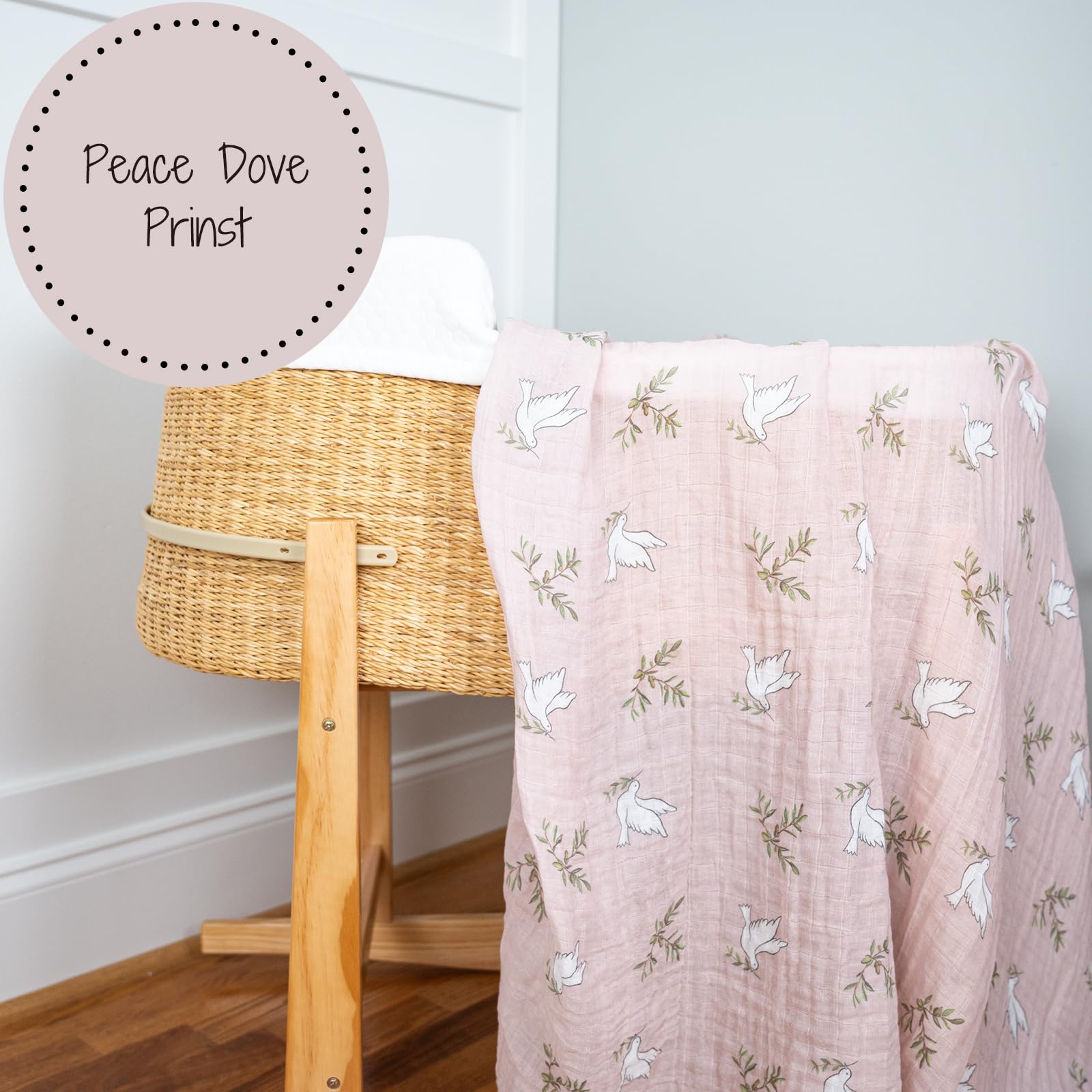PEACEFUL DOVE - Wrap your baby in serenity with our muslin swaddle blanket featuring a gentle dove design. Soft and breathable, it’s a symbol of peace and calm for your little one.