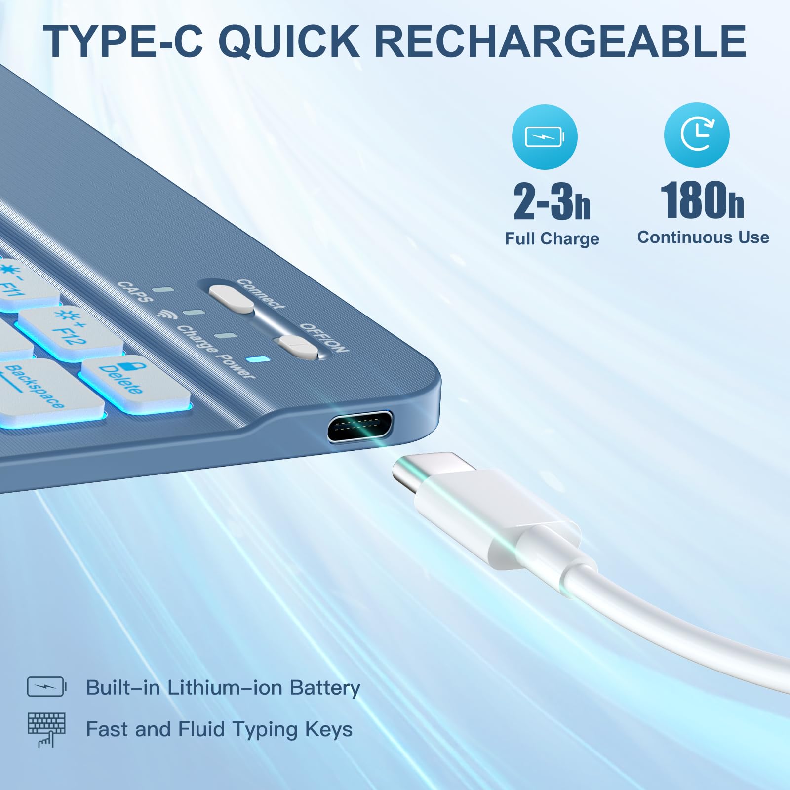 ❤【Long Life Battery Rechargeable Keyboard】The Harvopu wireless keyboard for iPad air 11 M3/ M2 & air (4th, 5th gen - 2020, 2022) built-in 400mAh high capacity lithium-ion battery with energy-saving mode, which worry-free use and long standby time. The Type-C charging port of keyboard charges faster, only 2-3 hours full charge. Suitable for home, office or school use and convenient for on the go studying and working
