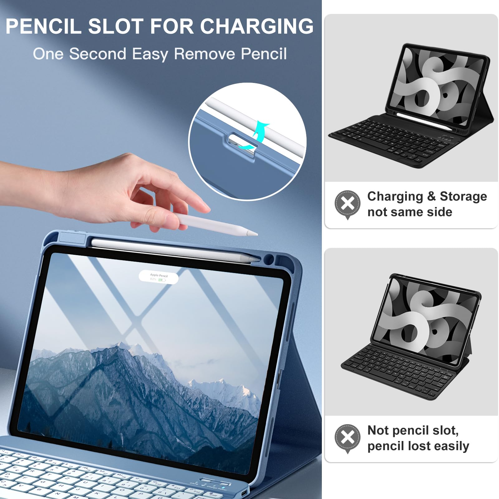 ❤【Support Charging Pencil Holder】The keyboard case built-in pen tray to hold your Apple Pencil so that don't worry about not finding your pen anymore. Moreover It charges directly and don’t have to take case off if you place the 2nd Gen Apple Pencil or New Apple Pencil-Pro