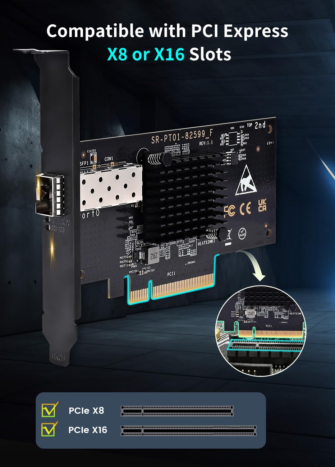 ⭐PCIe to 10Gbe SFP: This 10G PCIe network adapter converts PCIe slots (X8/16) into 10G SFP Ethernet ports. Note: Only for PCIe ports, not for PCI slots.