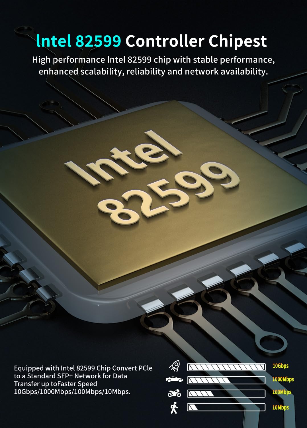 ⭐10G SFP Network Card :Adopting X520 Controller, it provides up to 10 Gbps of extreme speed to ensure the stability of Internet access and local data transmission, effectively preventing packet loss and making the server more stable.