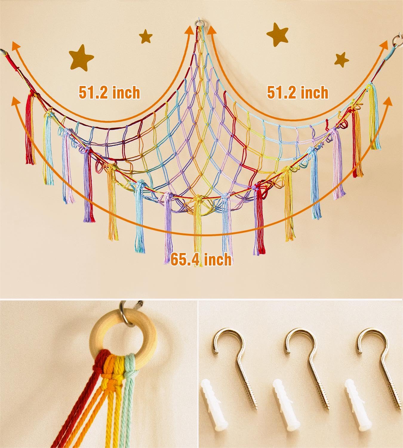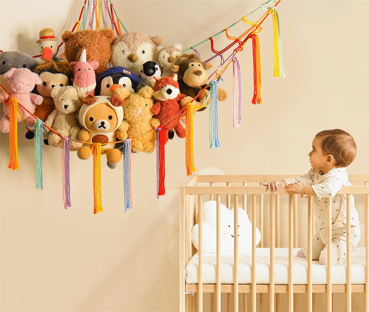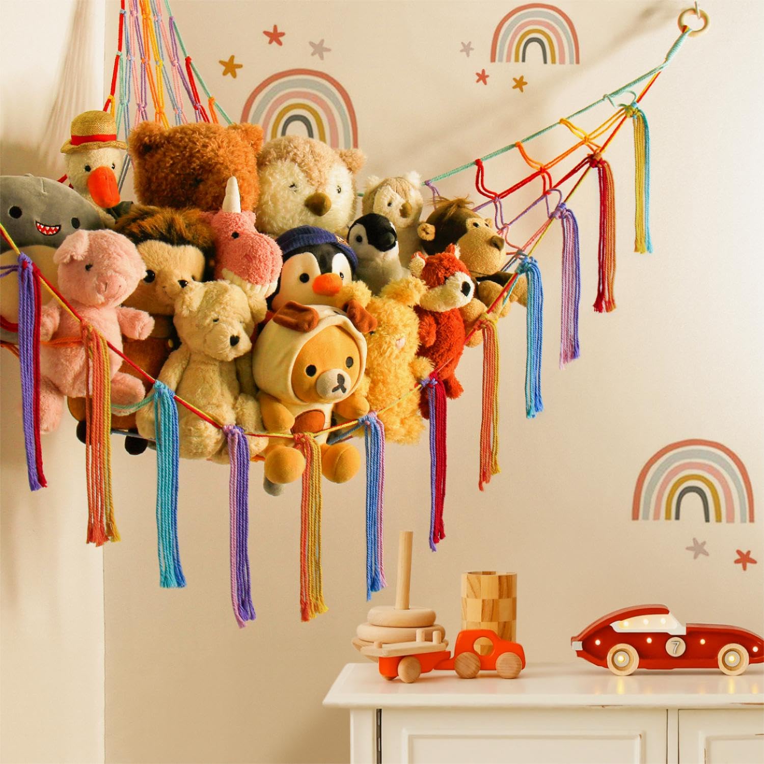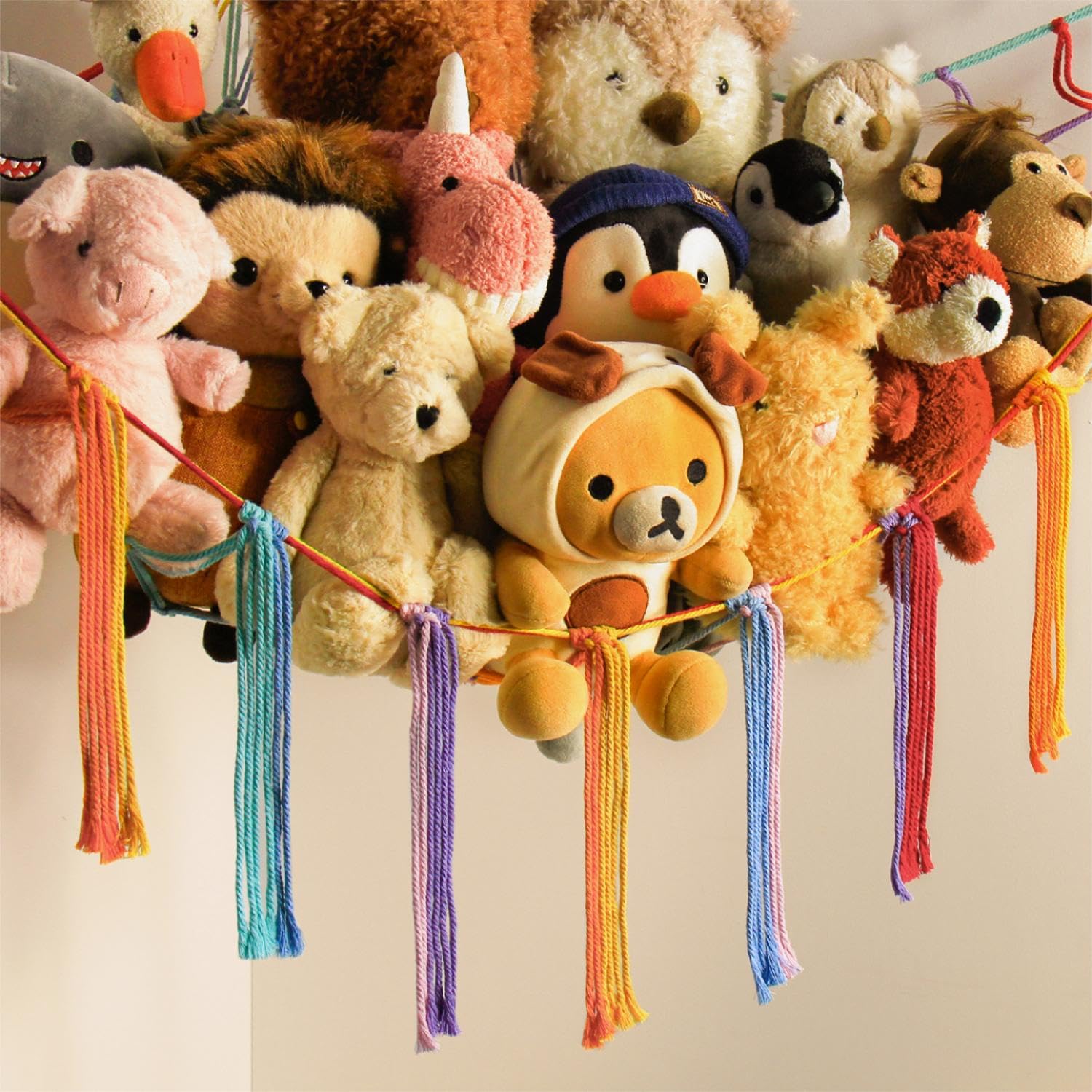 Practical yet Pretty Cute - Unlike the plain toy net, this handmade toy hammock net for stuffed animals not only keeps the plushies organized well, but also looks super cute as a beautiful room decor piece with a bohemian vibe when hung up.
