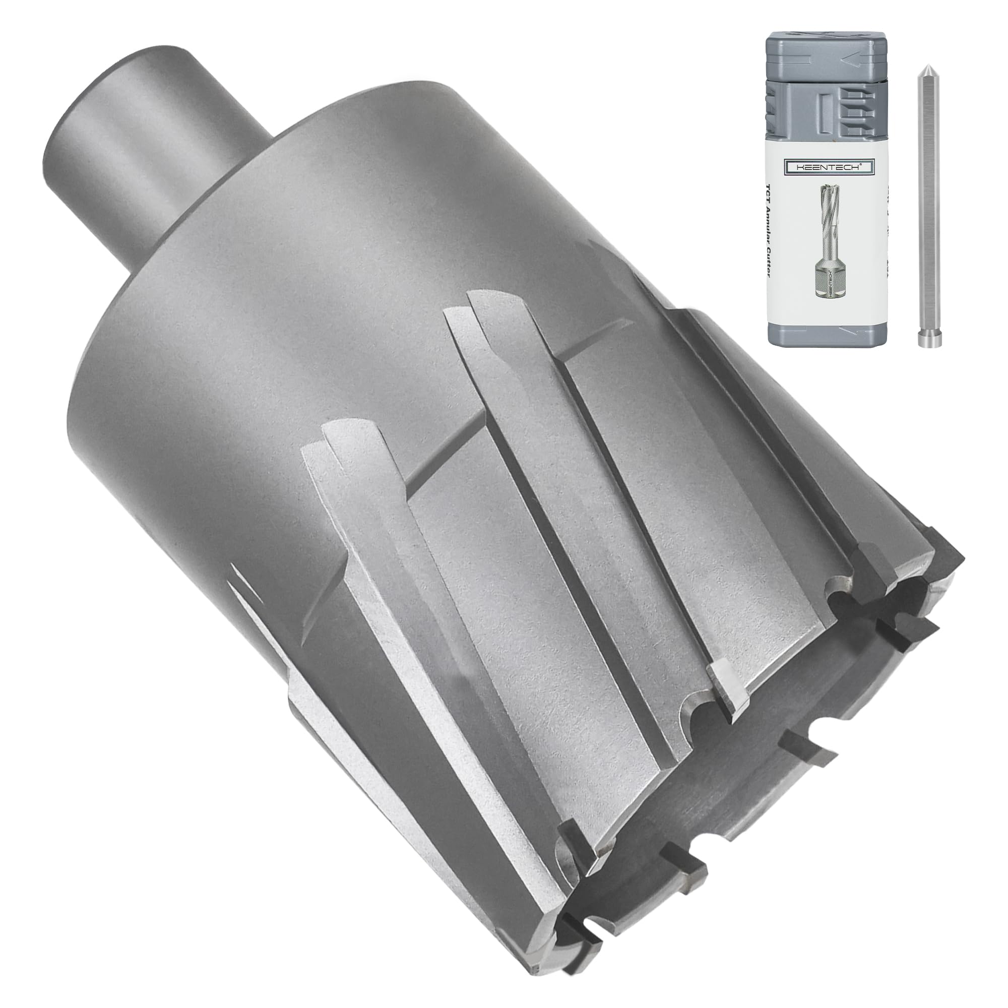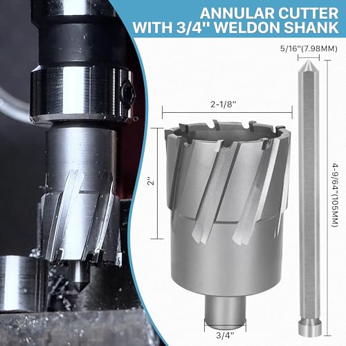 【Specifications】 - KEENTECH Annular Cutter features a premium carbide cutting edge for outstanding durability, making it ideal for drilling harder materials like stainless steel. It offers a 2-1/8" cutting dia and a 2" cutting depth, and comes with a free pilot pin. The 3/4" weldon shank design is compatible with various magnetic drills, including but not limited to Alfra, Evolution, Dewalt, Vevor, Zelcan and Hougen.