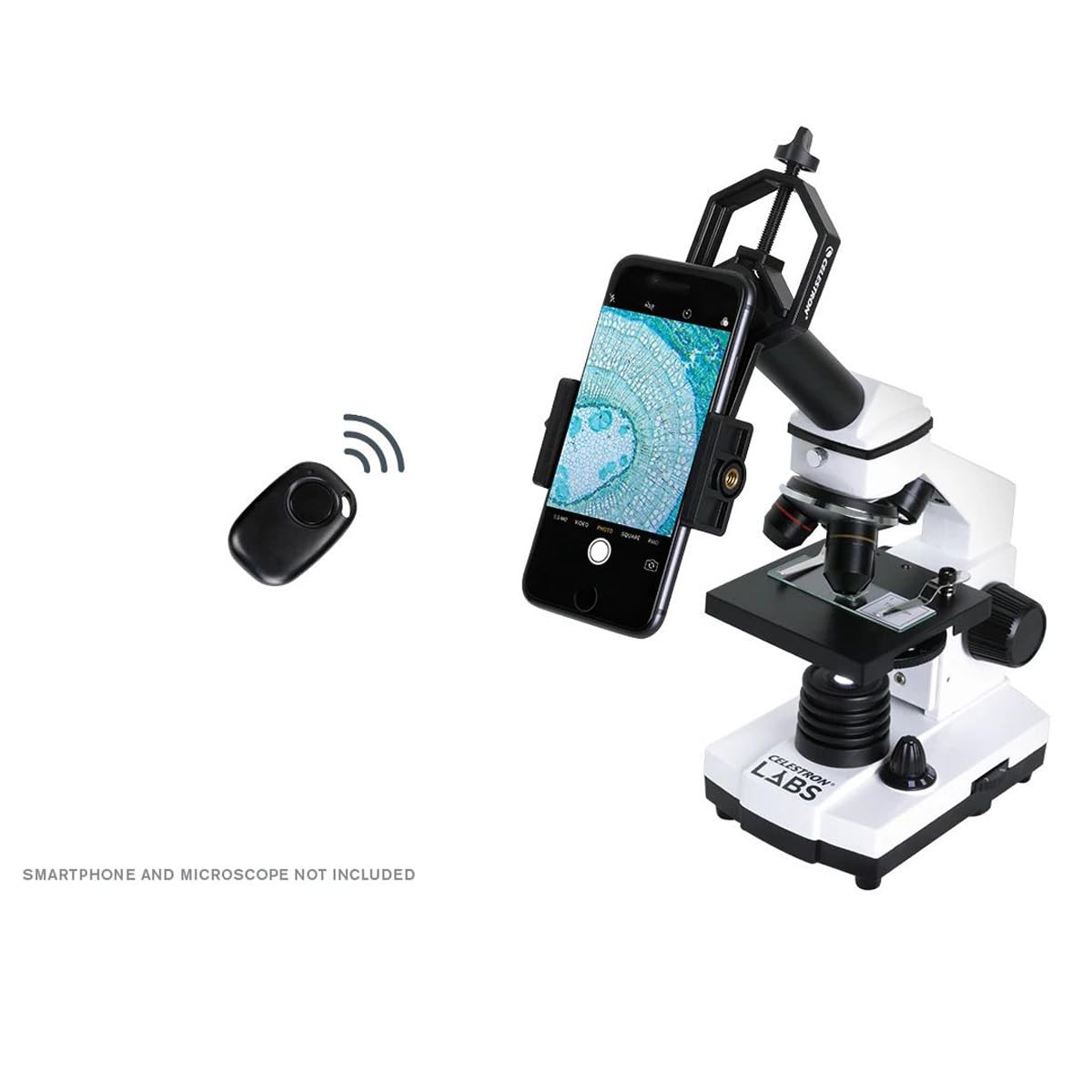 Take your smartphone photography to the next level with the Celestron Smartphone Adapter DX Kit, which includes the Universal Smartphone Adapter and a Bluetooth shutter release remote. Designed to work with nearly any smartphone and a wide range of optical devices—telescopes, spotting scopes, binoculars, monoculars, and microscopes—this versatile adapter makes it easy to capture images and videos of the world around you. The included Bluetooth remote allows you to trigger your smartphone’s camera shutter without disturbing the device, ensuring crisp, clear, and non-shaky images every time. Secure the adapter to your eyepiece by tightening the eyepiece clamp, which locks the adapter firmly around eyepieces ranging from 29mm to 45mm in diameter, including most 1.25” telescope eyepieces. Place your smartphone in the adjustable phone clamp, which holds your device securely in place. Then use the alignment knob to position your phone’s camera precisely over the eyepiece for a clear, sharp image. You can also rotate your smartphone adapter 90* to switch between portrait and landscape orientation as needed. The Smartphone Adapter is a great choice for star parties and group bird walks where everyone wants their own shot of the action. Whether you’re observing the Moon through a telescope, photographing wildlife through binoculars, or exploring tiny details under a microscope, the Celestron Universal Smartphone Adapter makes it simple to capture and share your discoveries. Lightweight, portable, and easy to use—perfect for beginners and experienced observers alike.