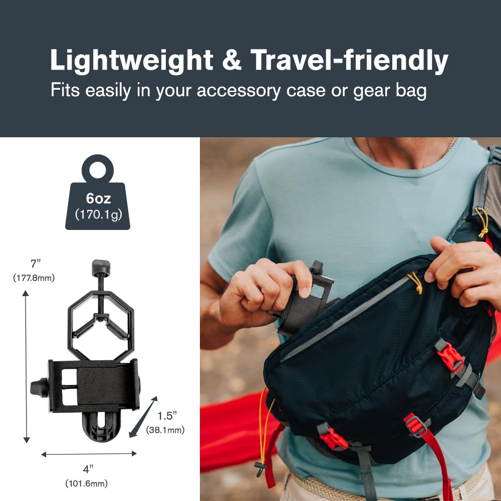 EASY TO USE: Simply place your phone in the adapter, center your phone’s camera over the eyepiece, and use the knobs to secure the adapter in place.