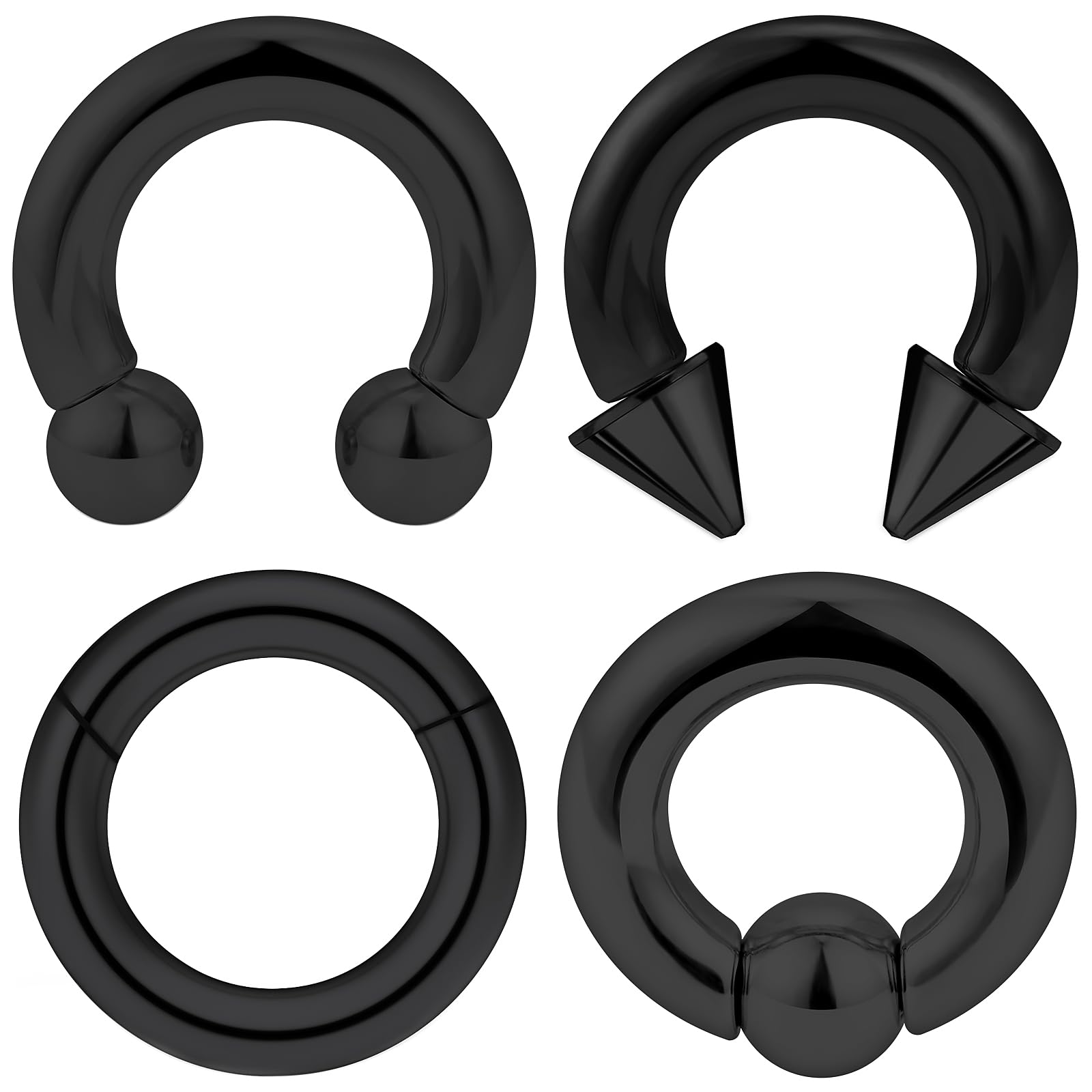 One Order Included 4 PCS Large Black Septum Rings Have 4 Styles, Each Style One Piece,Economical Price with Trendy Design Give You a Colorful Day.