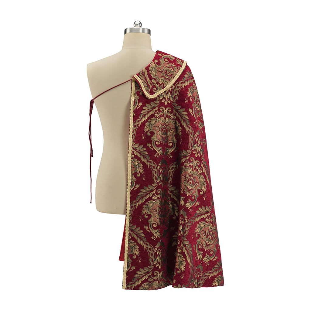 Description This renaissance one shoulder cloak is one size ,fits most adults.