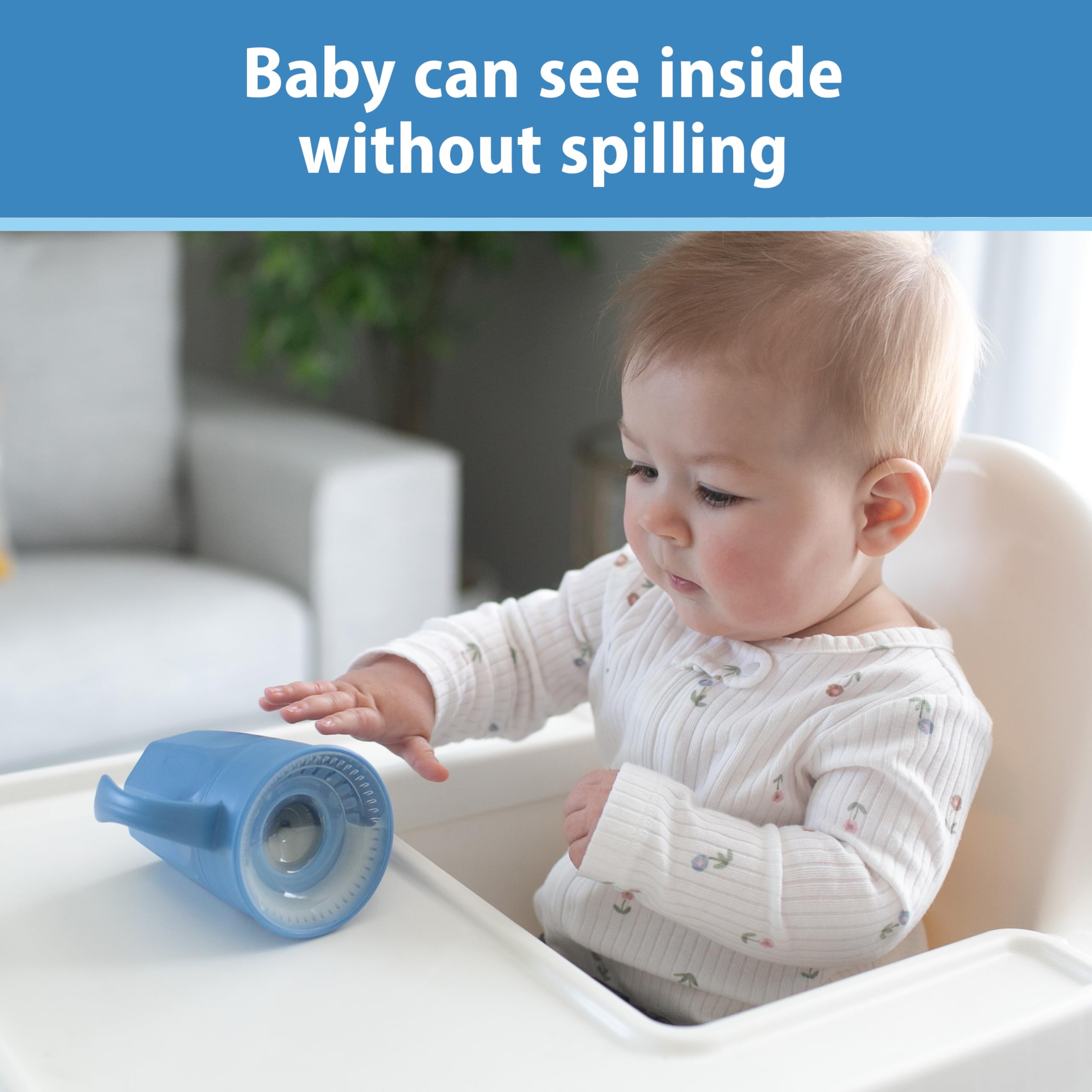 SPOUTLESS 360 CUP. Leak-free design lets baby drink from any edge without spilling.