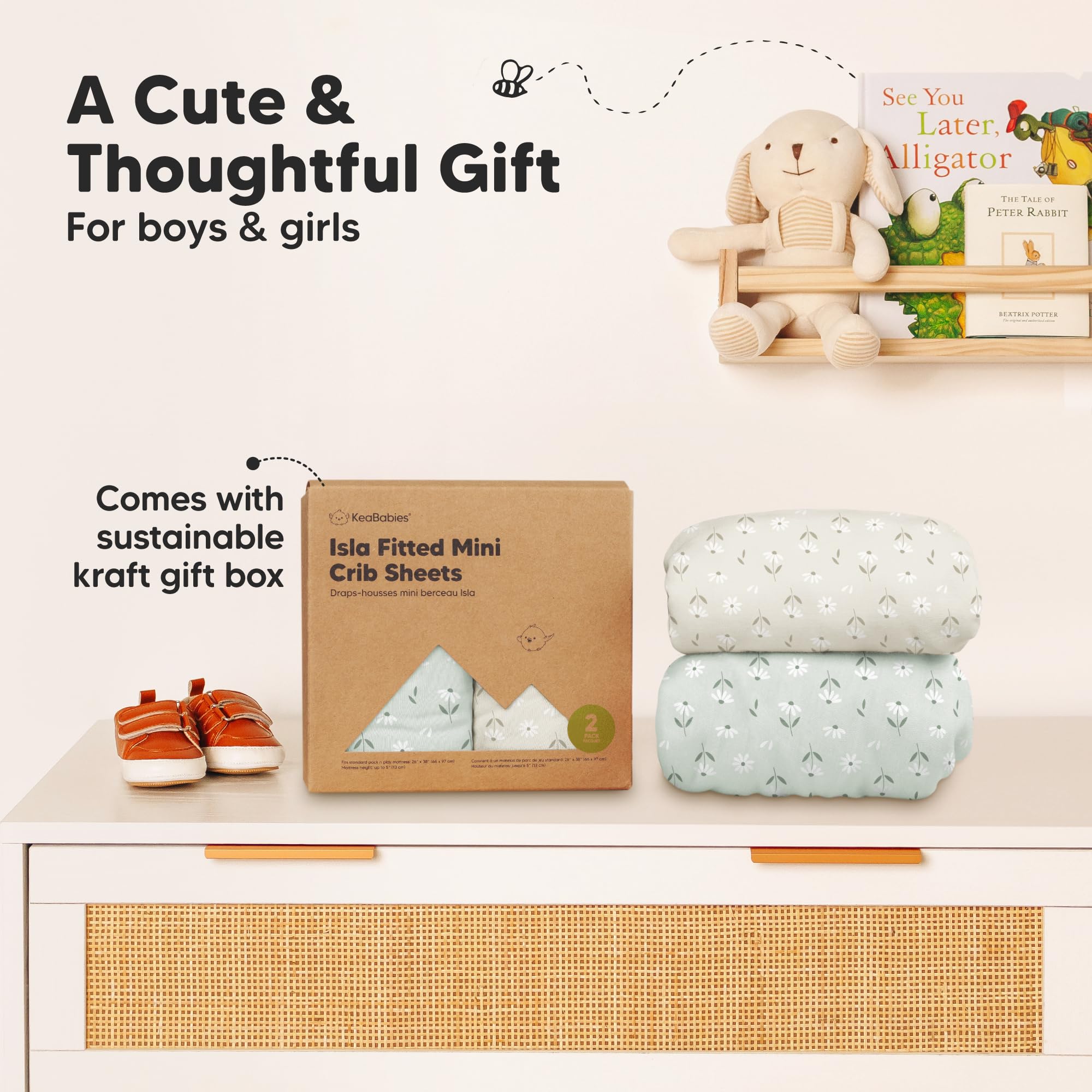 Neutral, Gentle on Skin - The KeaBabies Isla Mini Crib Sheet Fitted is buttery-soft and extra gentle for baby's delicate skin. The neutral designs on these baby-safe, pack n play sheets are suitable for baby boys and girls.