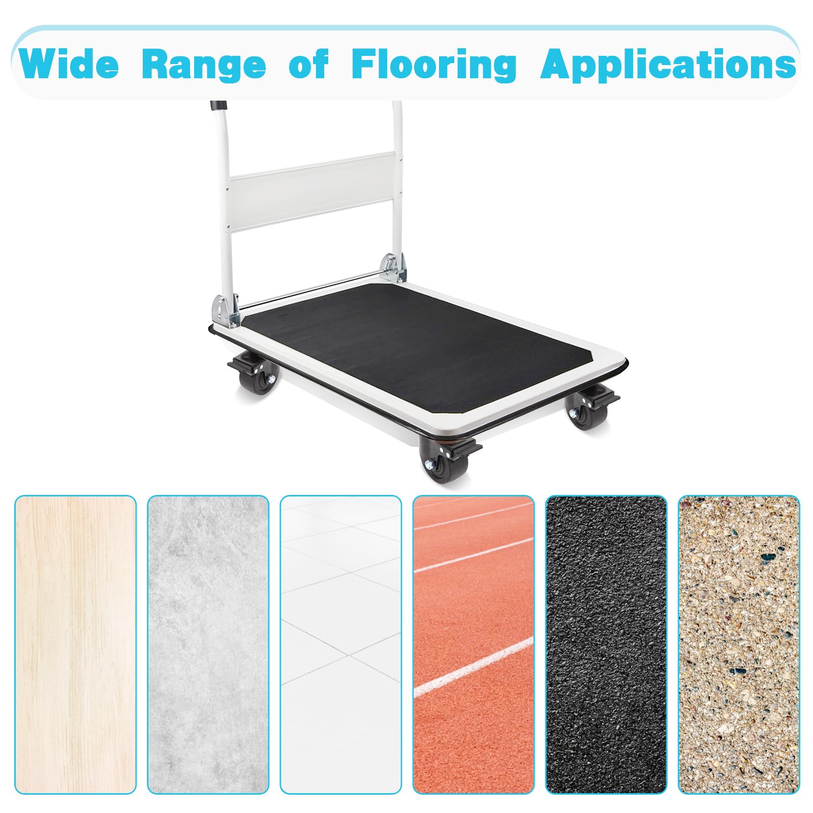 Anti-Tip Design with Ultra-Low Center of Gravity:Widened plate and low-profile wheels minimize tilt risks by 50% versus traditional casters. Ensures safe transport on uneven surfaces or during sharp turns, even with top-heavy loads